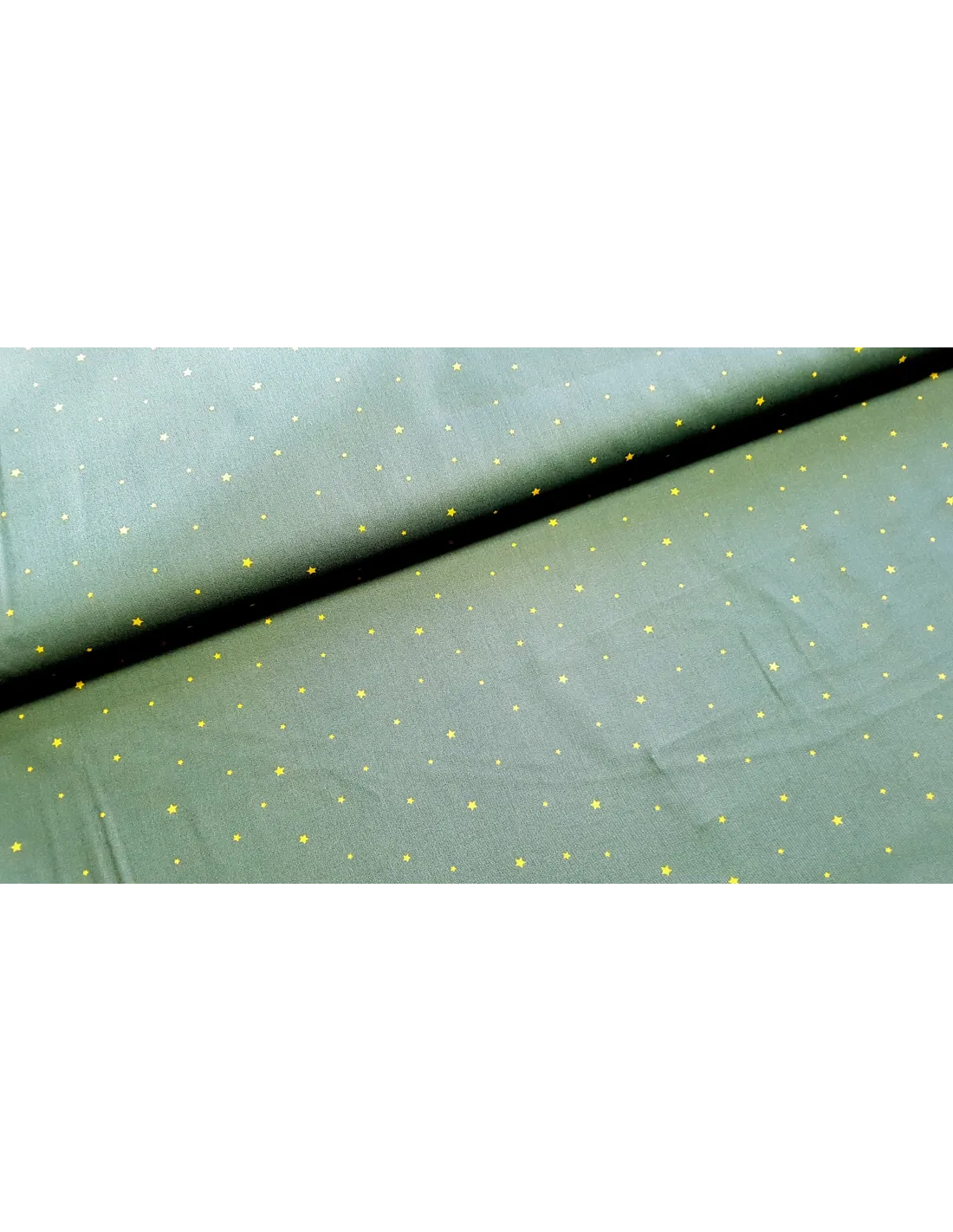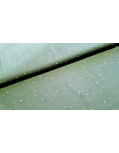 Popeline de coton à imprimés petites étoiles dorées de Noël sur fond vert kaki