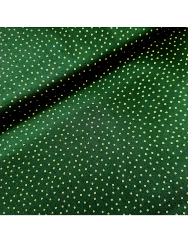 Coton de noël pois dorés sur fond vert