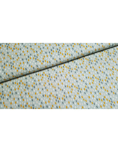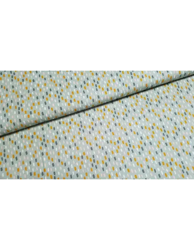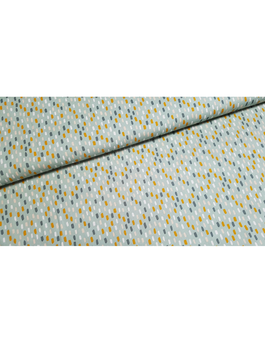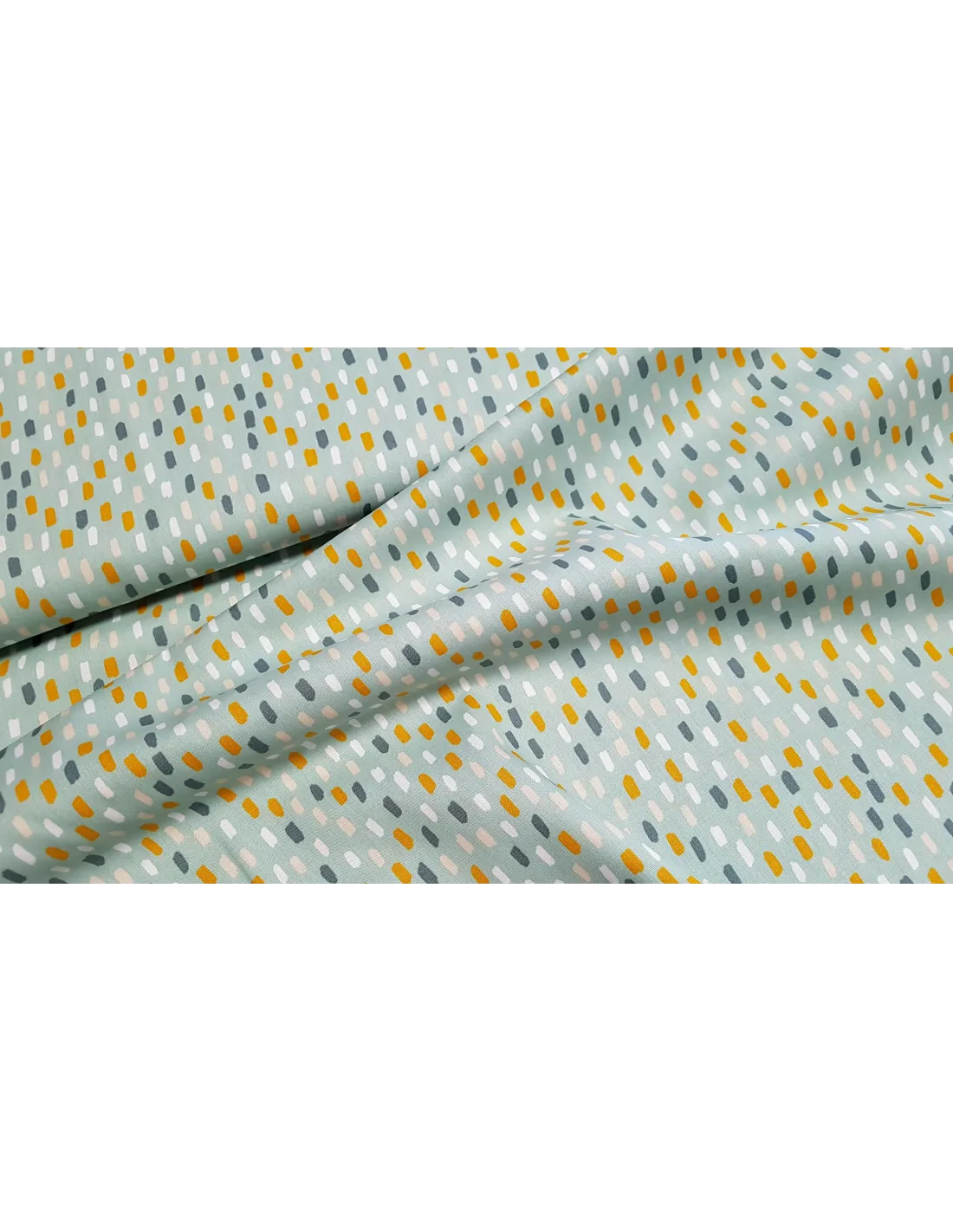 Popeline de coton à imprimés empreintes sur fond vert pastel.
