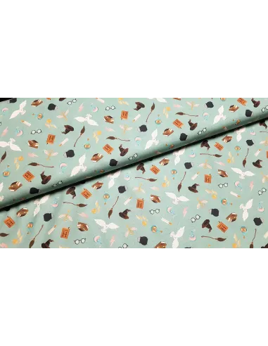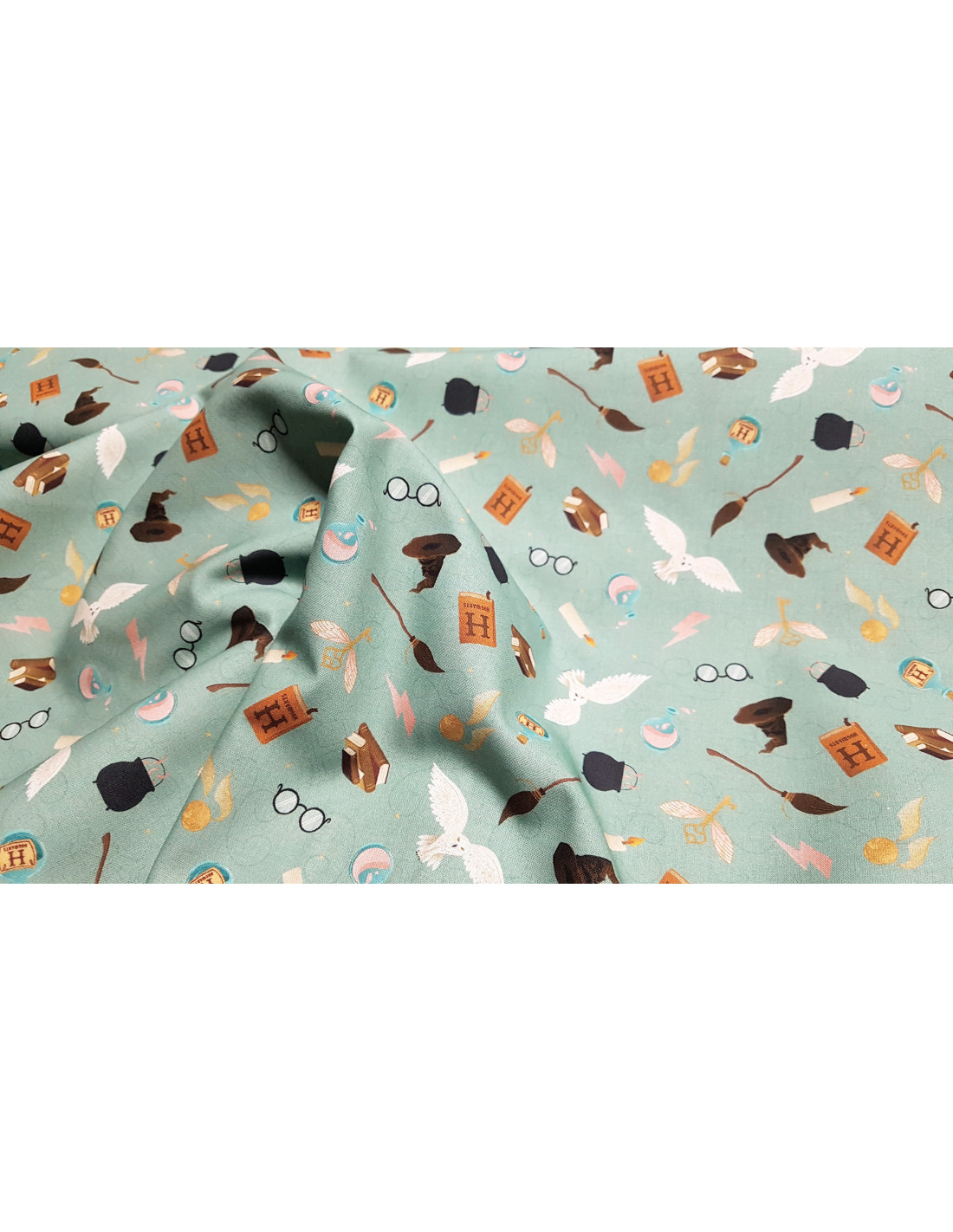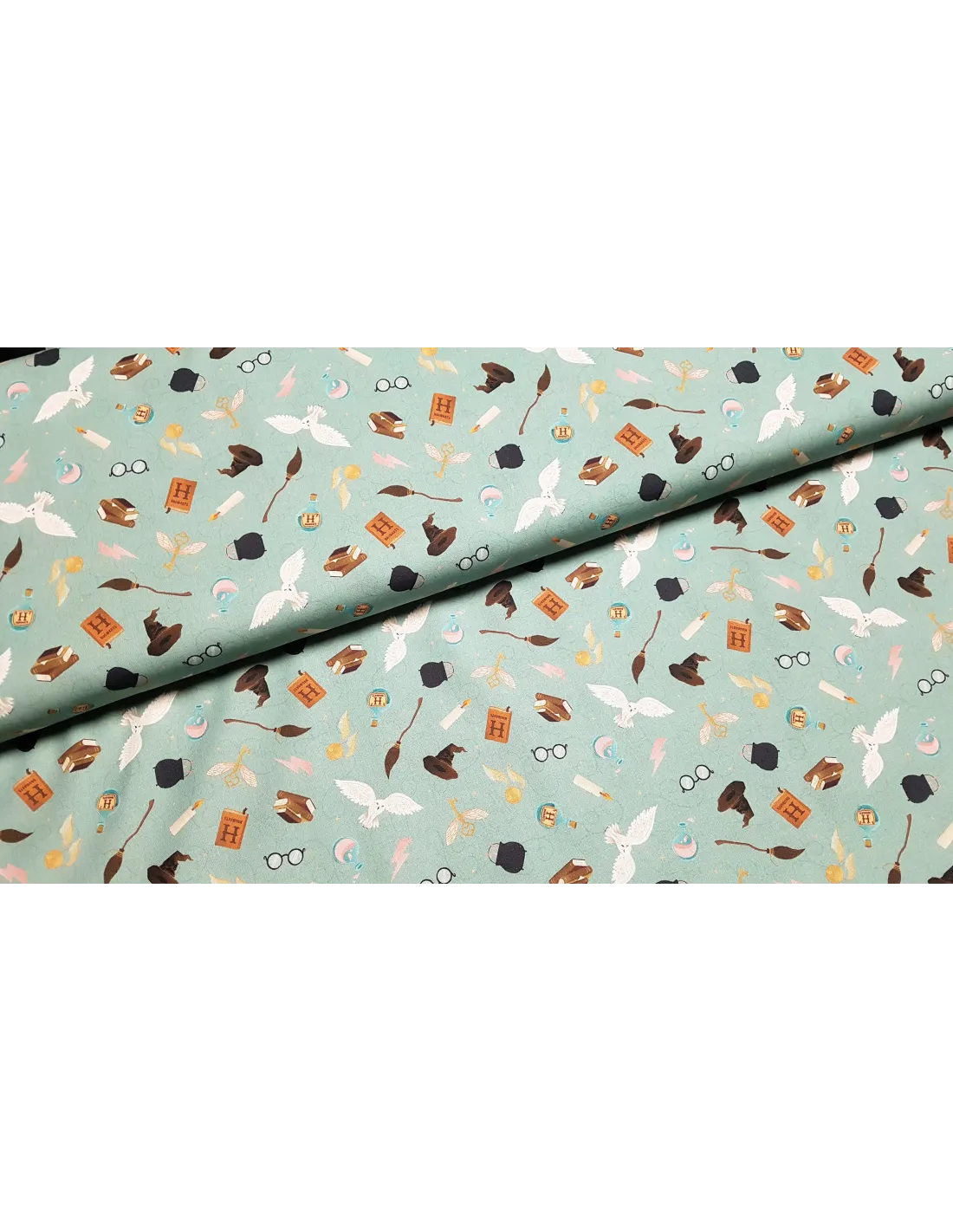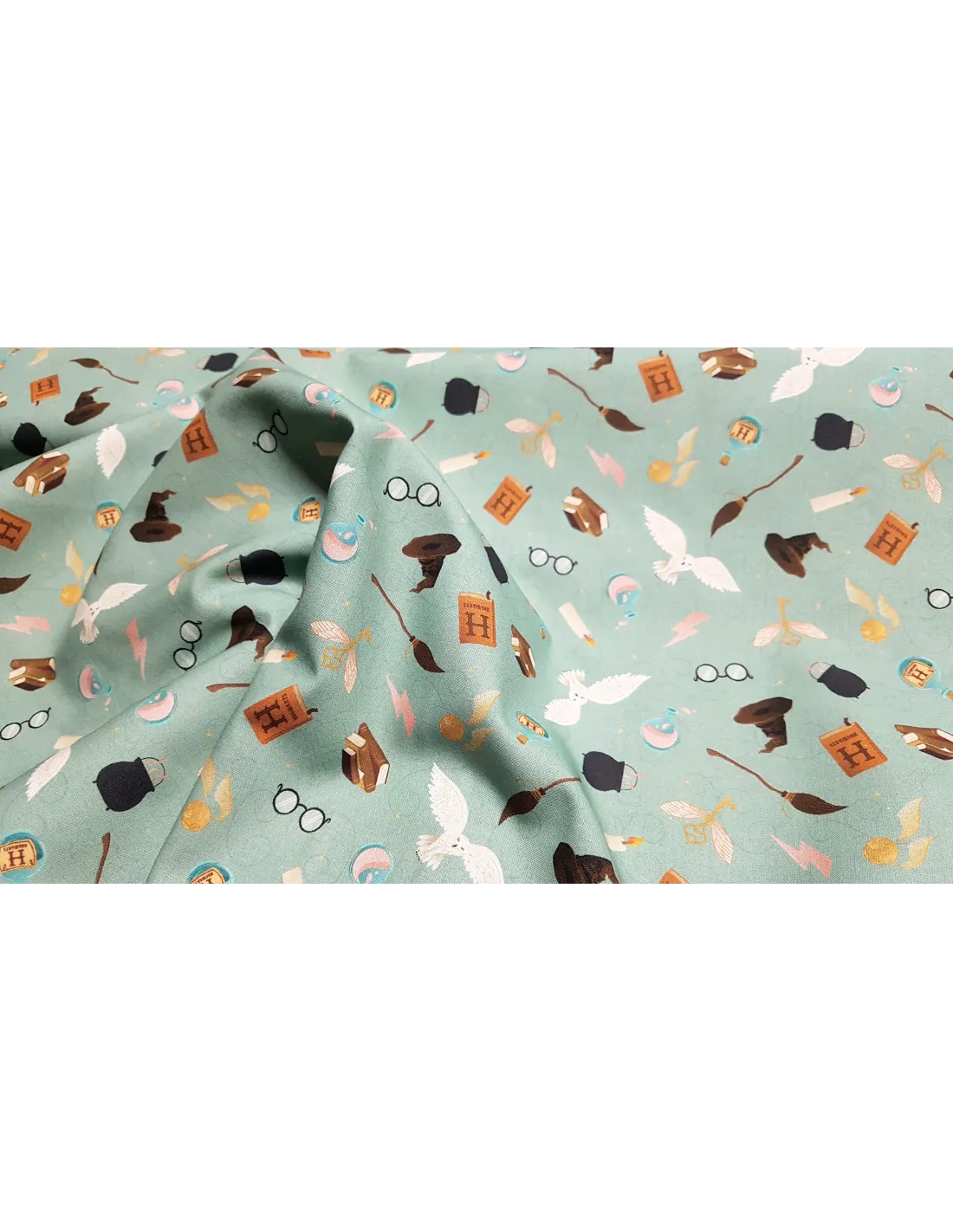 Popeline de coton licence aux motifs Harry Potter dans les tons verts pâles