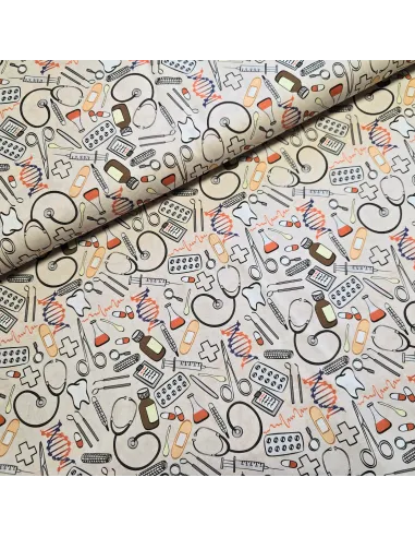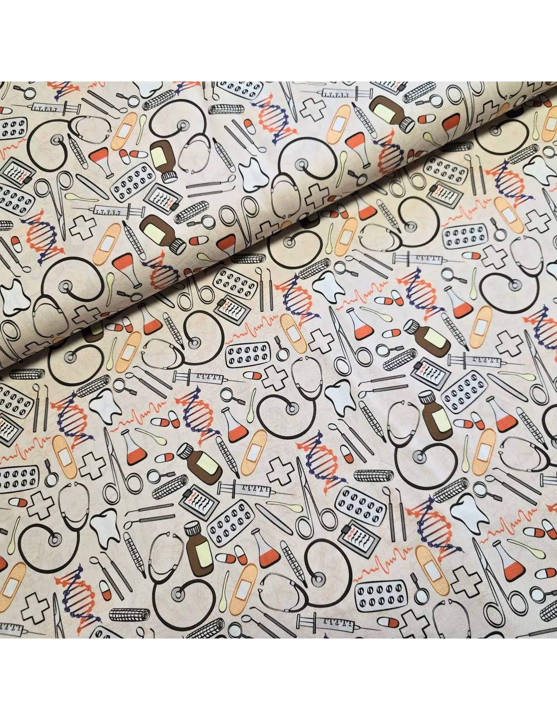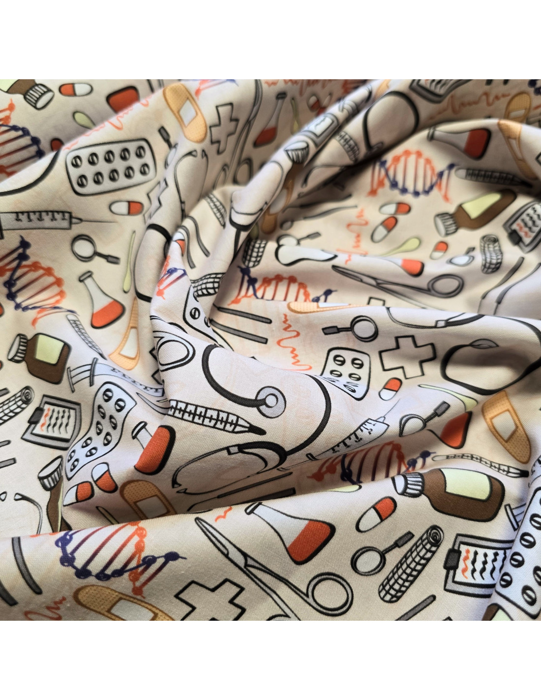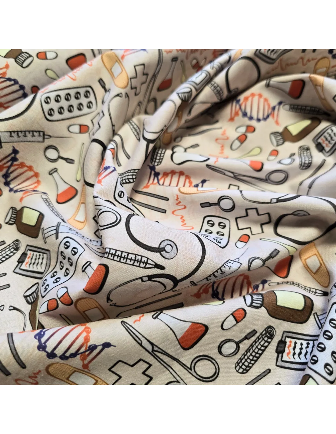 Popeline de coton, impression digitale, médecine. Conviendra pour l'habillement ou la décoration.