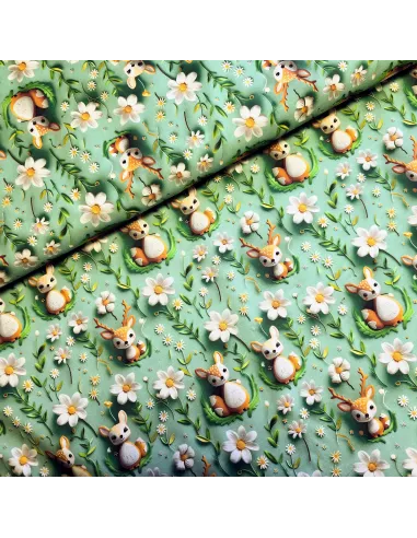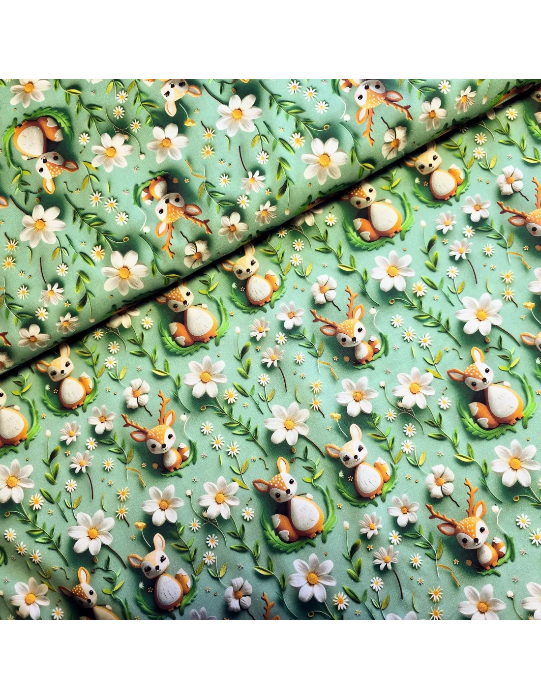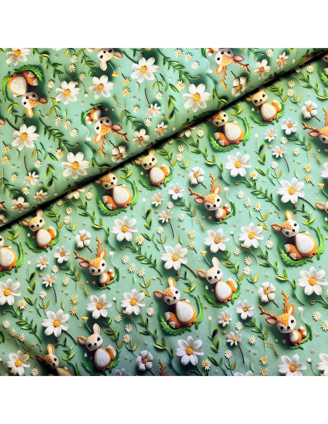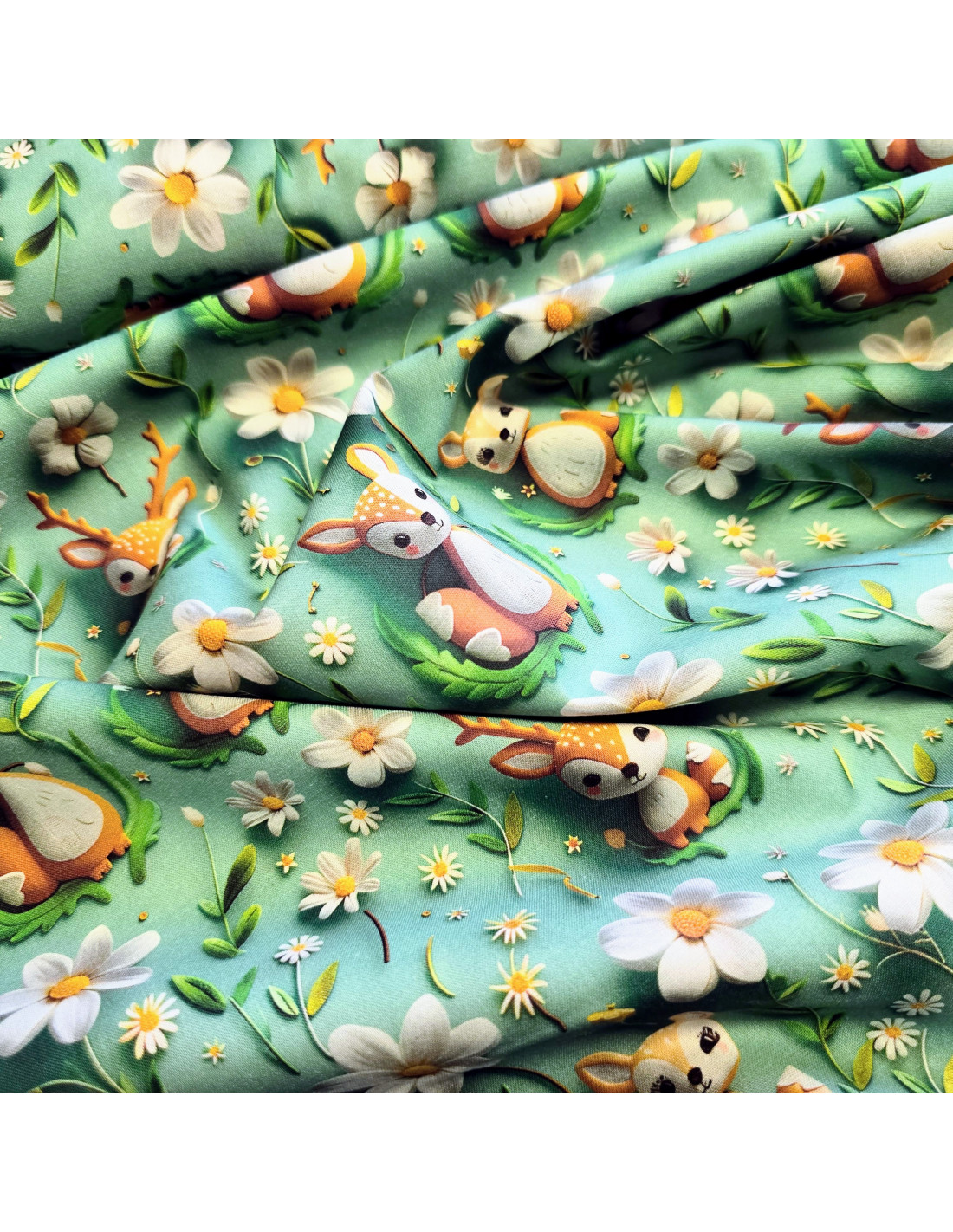 Popeline de coton, impression digitale effet 3D, biches. Conviendra pour l'habillement ou la décoration.