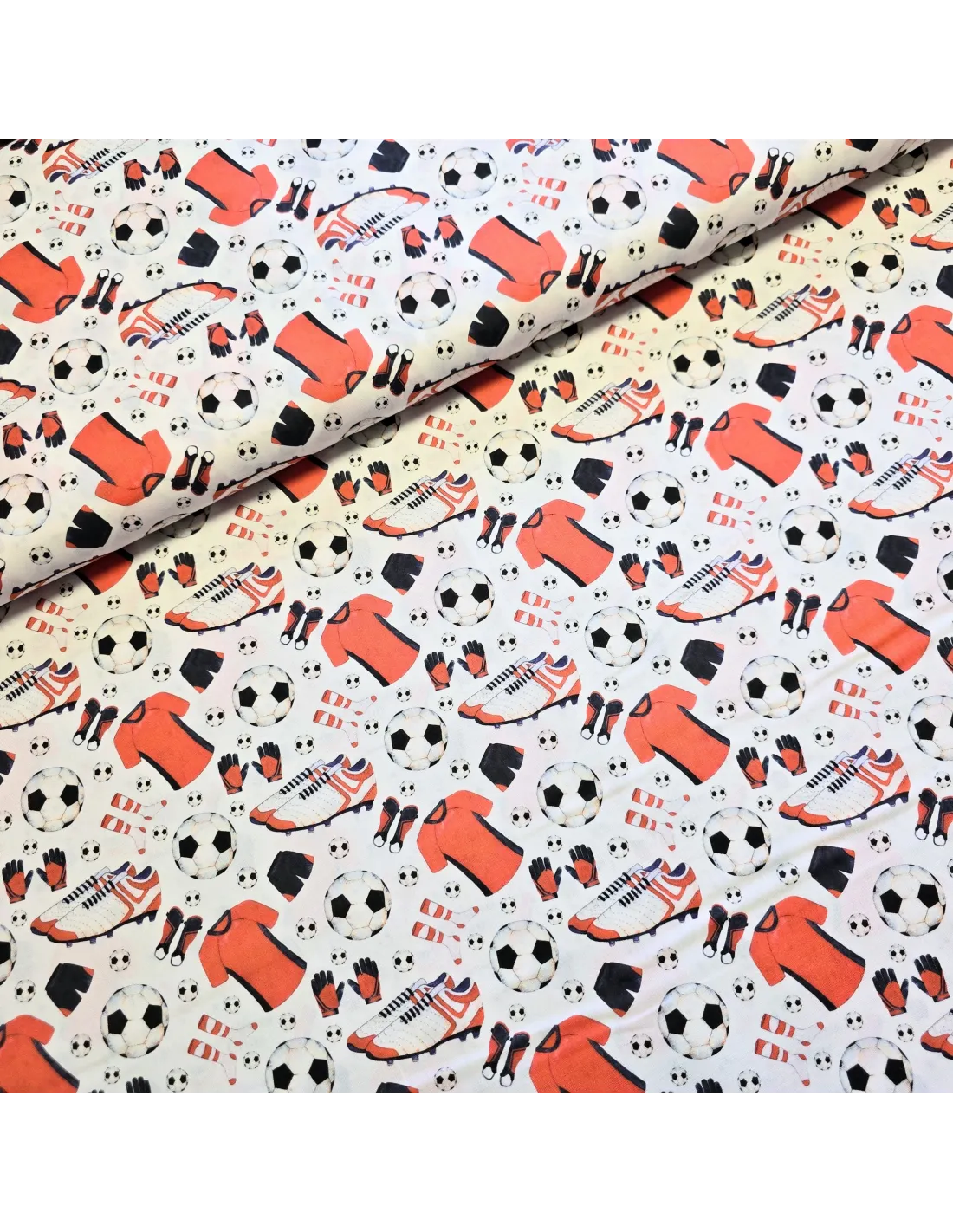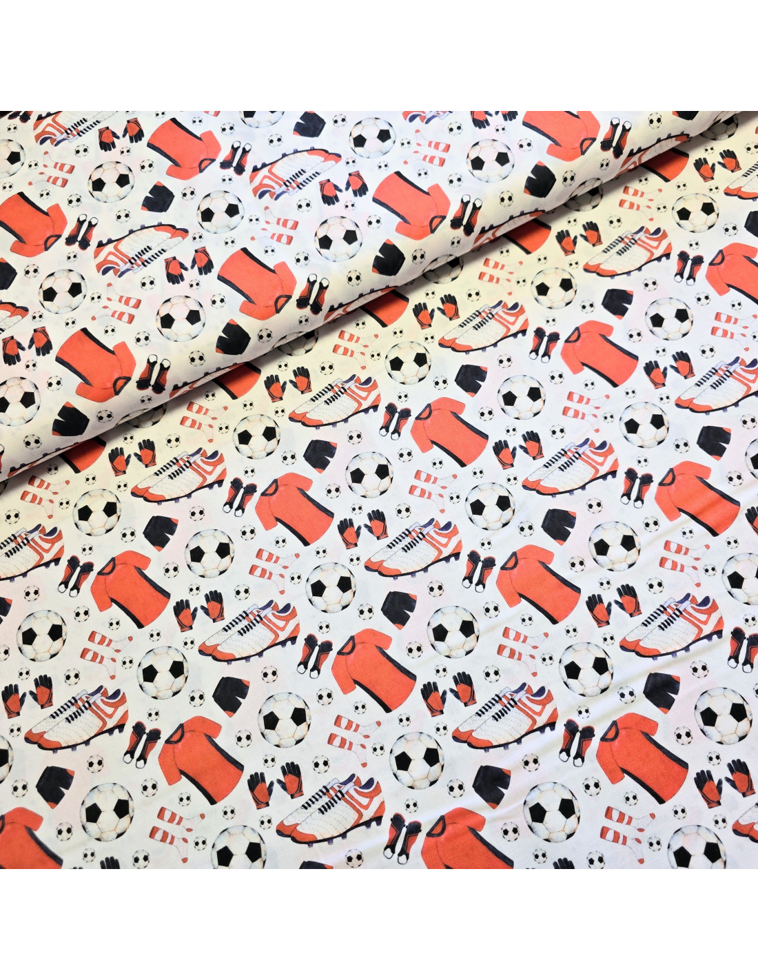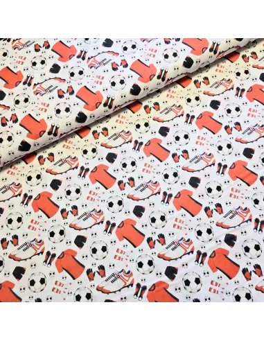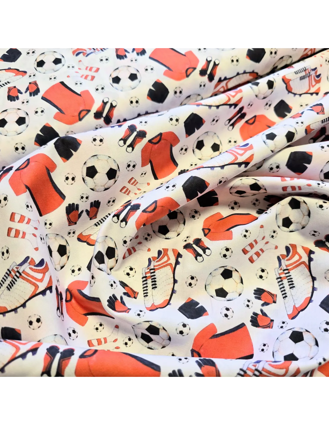 Popeline de coton, impression digitale, foot. Conviendra pour l'habillement ou la décoration.