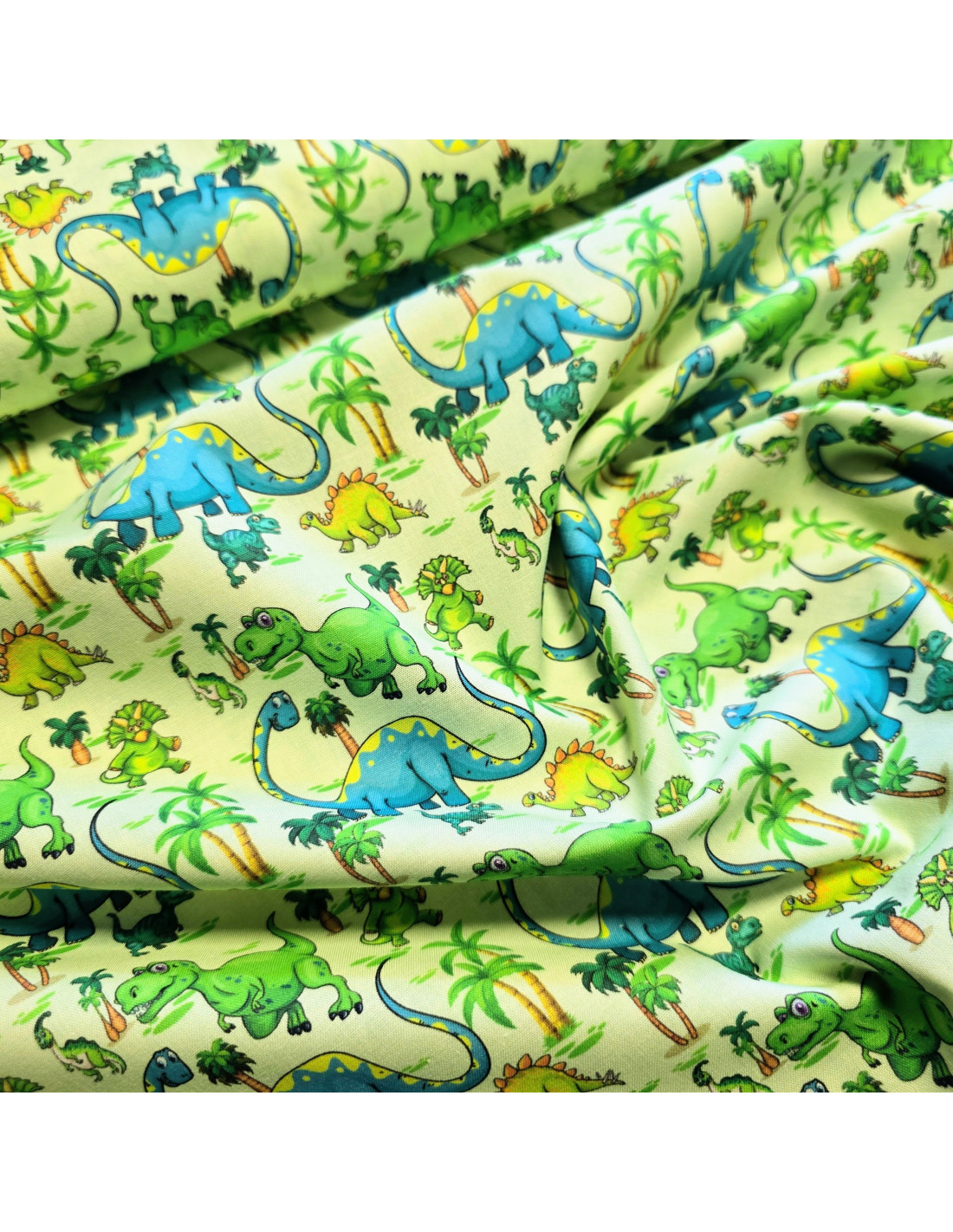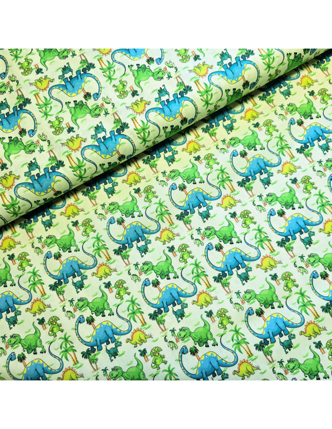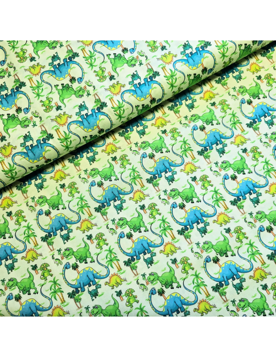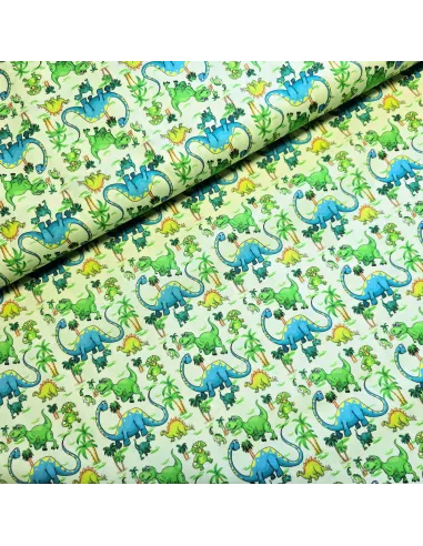 Popeline de coton, impression digitale, dinos. Conviendra pour l'habillement ou la décoration.