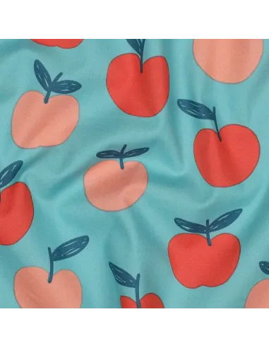 Apportez une touche de fraîcheur et d'originalité à vos créations avec cette popeline de coton pleine de peps ! Ce tissu, une création exclusive de POPPY, est orné de motifs de pommes orange stylisées qui se détachent avec gourmandise sur un fond turquoise lumineux. Un design aussi joyeux que moderne, parfait pour égayer votre dressing ou votre intérieur.