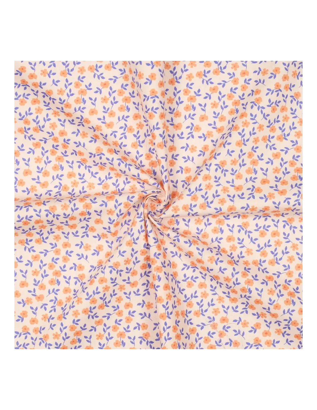 Illuminez vos créations avec ce tissu en 100% coton, qui évoque la joie et le soleil. Son design est un hymne à la nature, avec une impression de petites fleurs délicates aux teintes vives orange et bleues qui se détachent joliment sur un fond jaune éclatant. Ce motif printanier et joyeux est idéal pour apporter une touche de fraîcheur et de fantaisie à votre garde-robe.