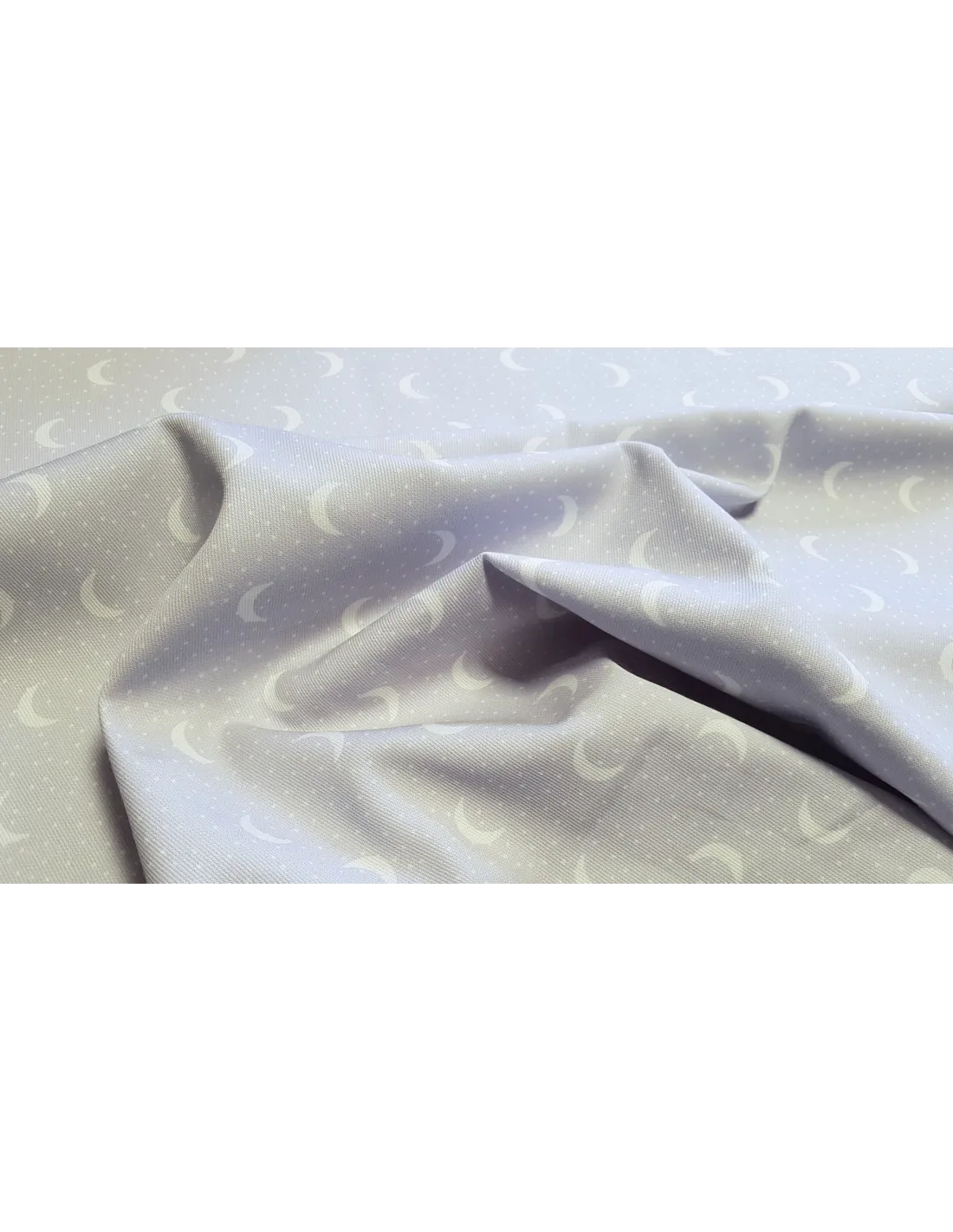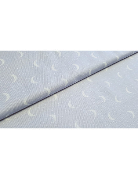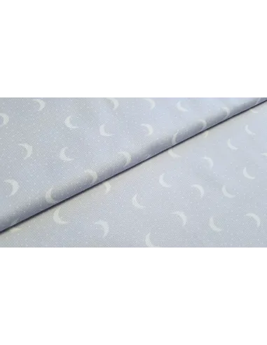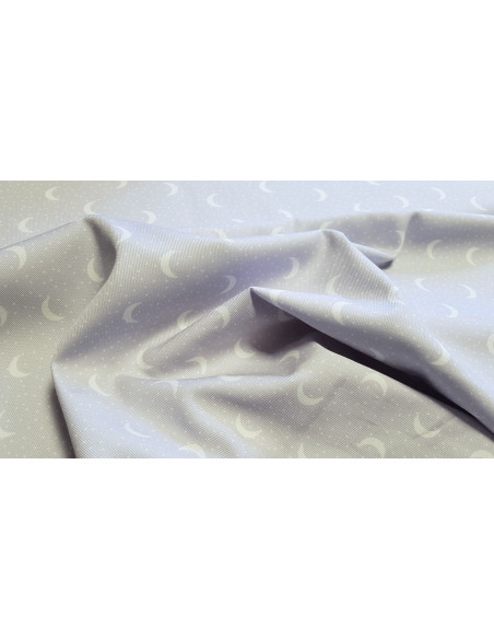 Piqué de coton croissant de lune sur fond gris. Ce tissu est un peu plus épais qu'une popeline ce qui lui confère une bonne tenue.