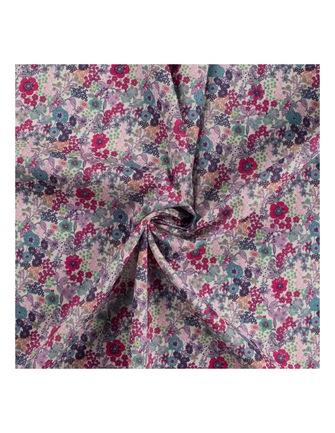 Popeline de coton à impression digitale fleurie. Ce tissu de haute qualité a un toucher extrêmement doux.
