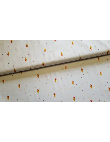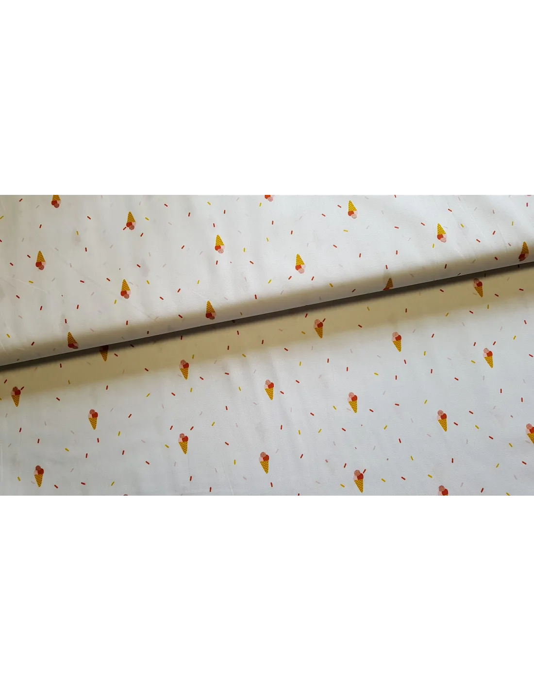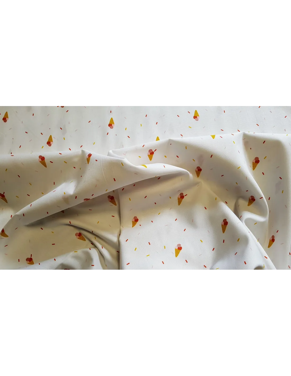 Popeline de coton à imprimés sorbets avec lurex sur fond blanc.