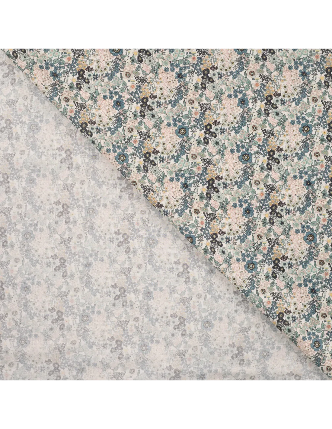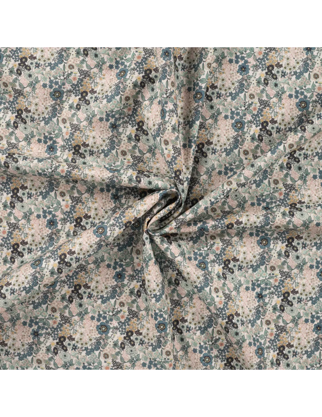 Très belle popeline de coton à impression digitale fleurie dans les tons de vert. Ce tissu de haute qualité a un toucher extrêmement doux.