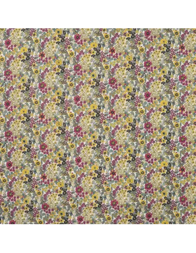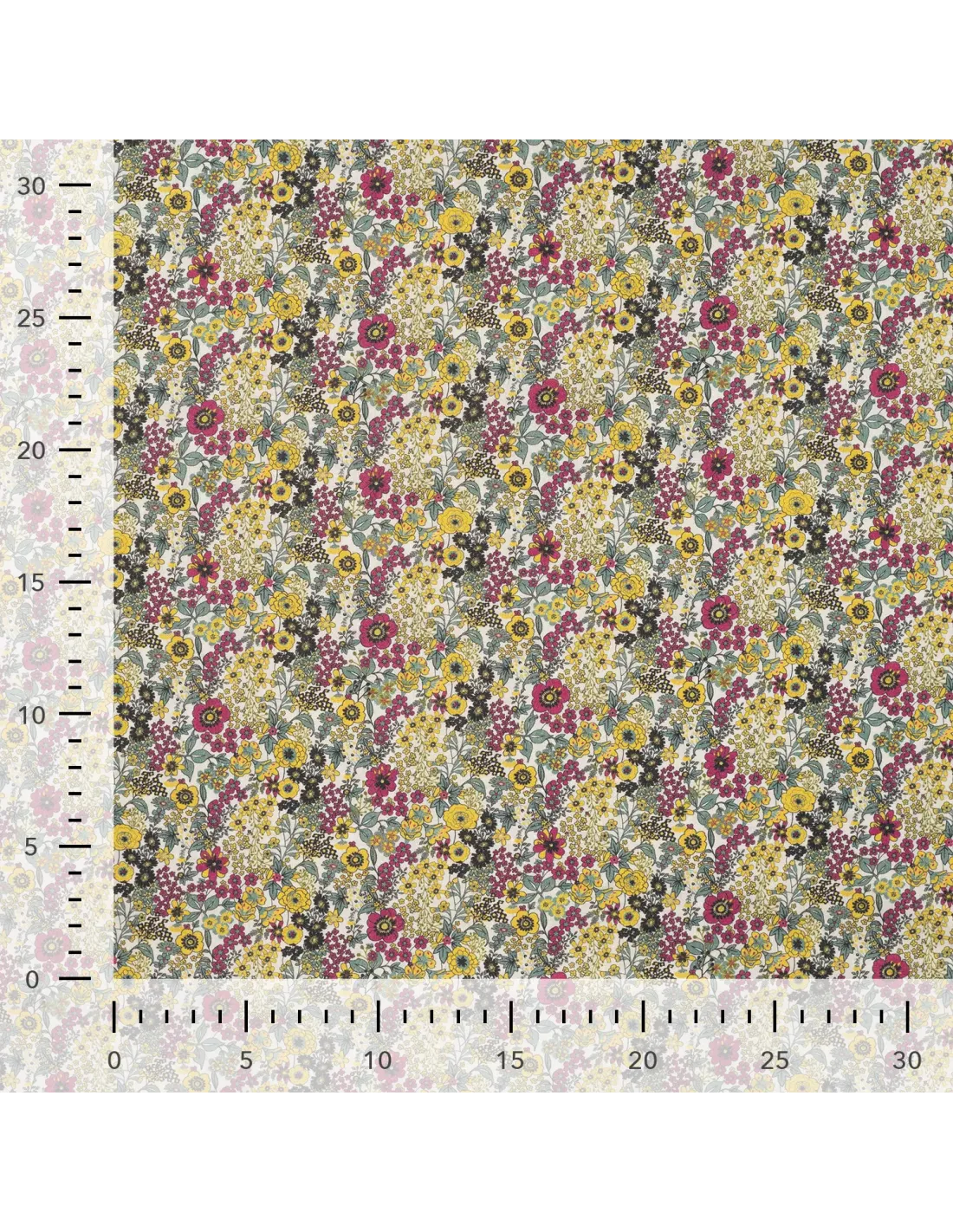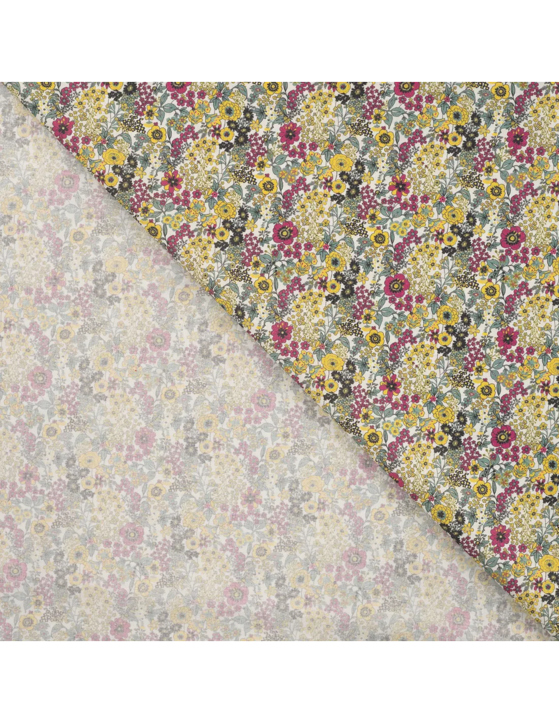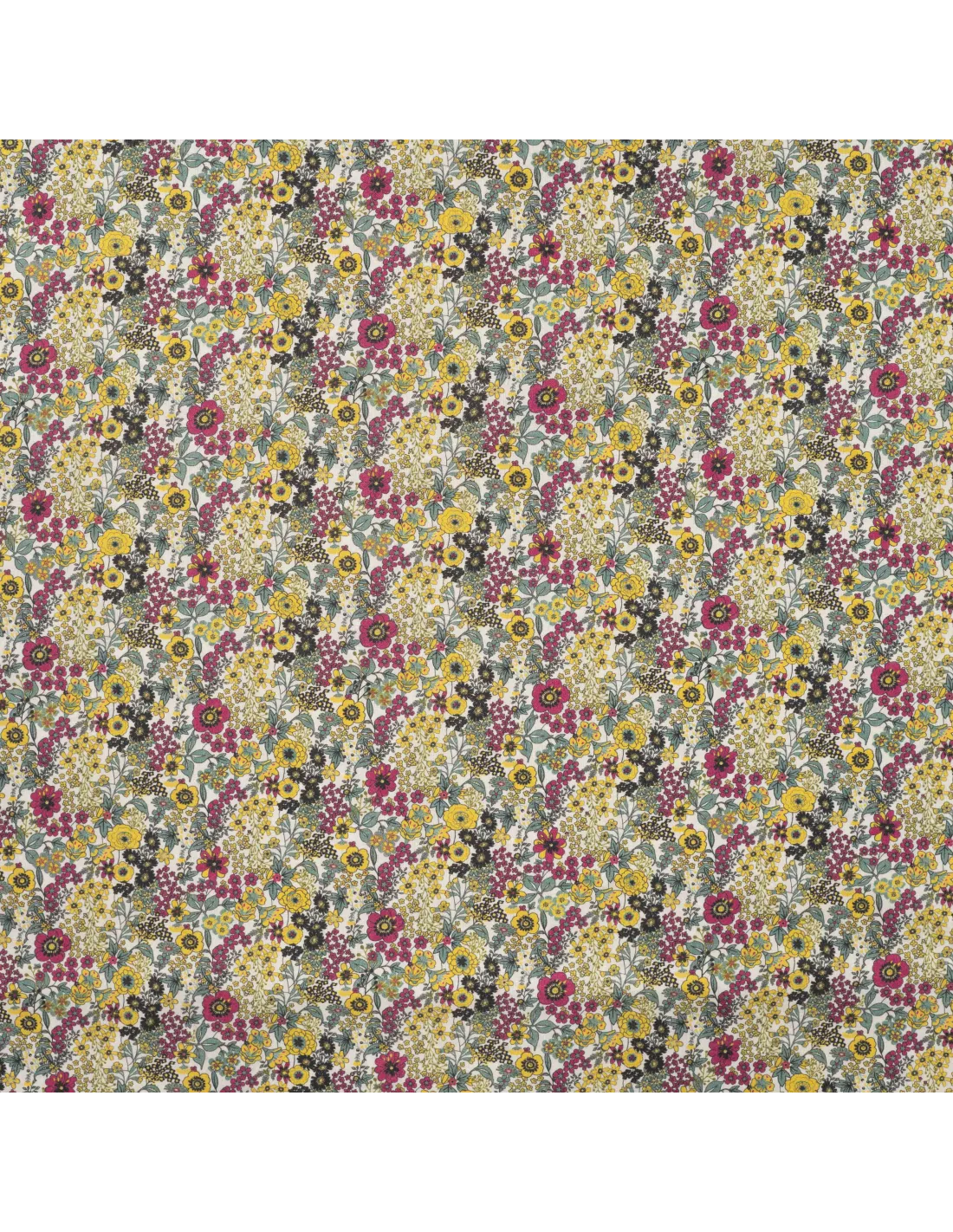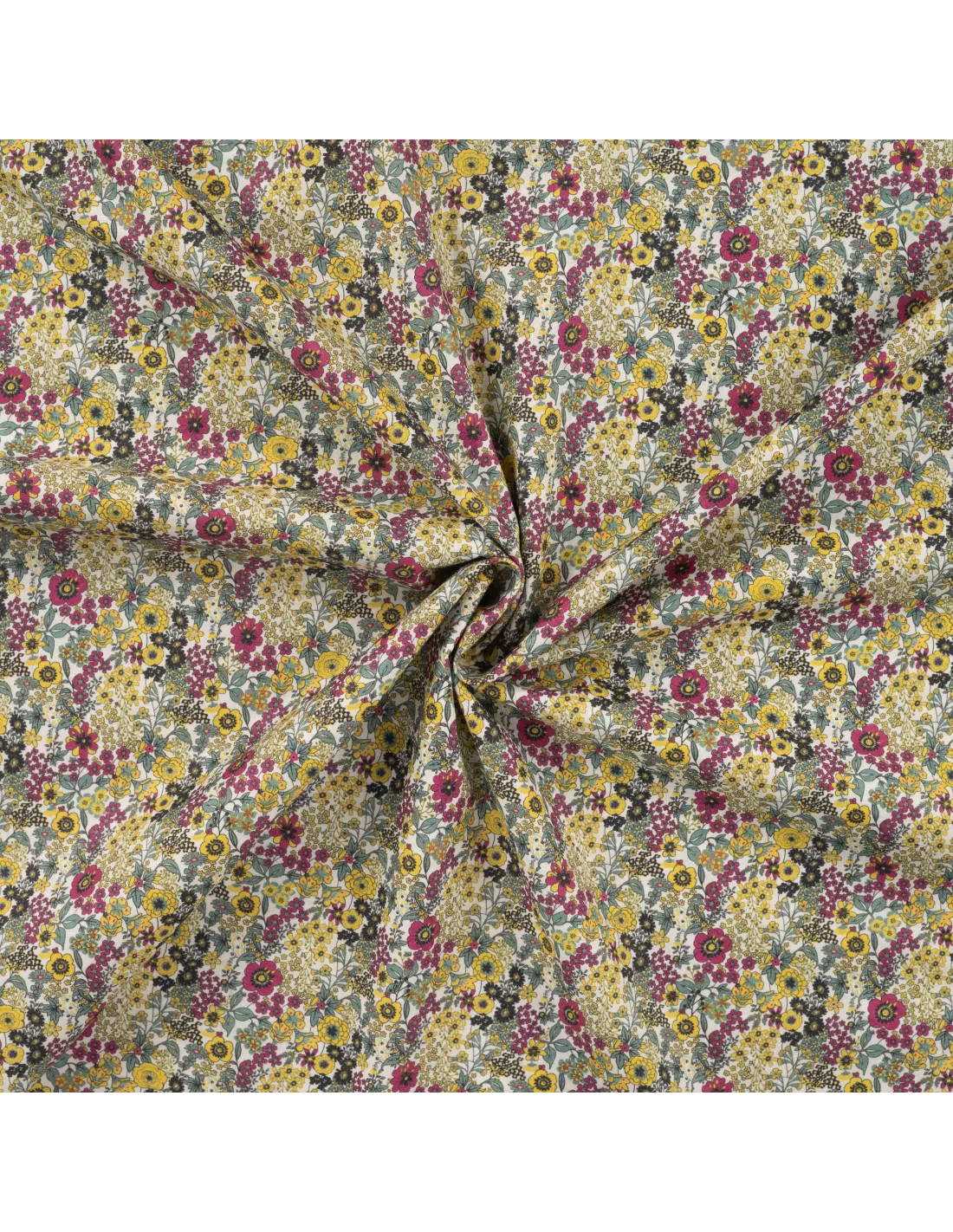 Très belle popeline de coton à impression digitale, fleurie dans les tons de vert et jaune.