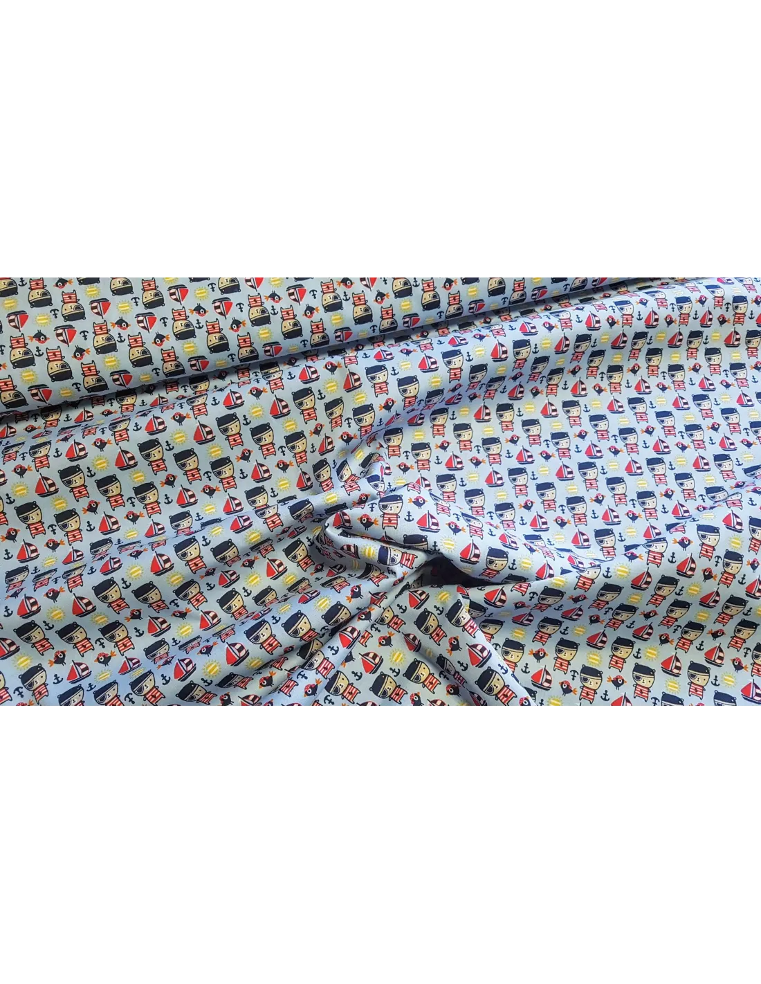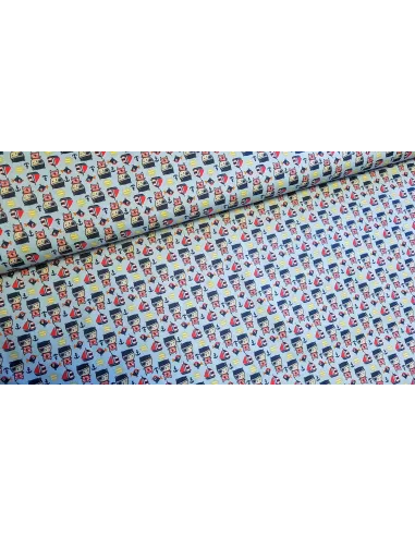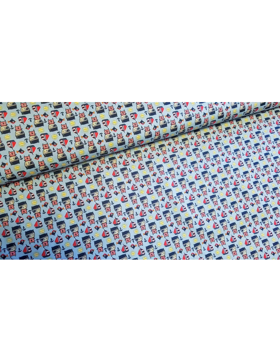 Popeline de coton à imprimés ours pirates sur fond bleu ciel.