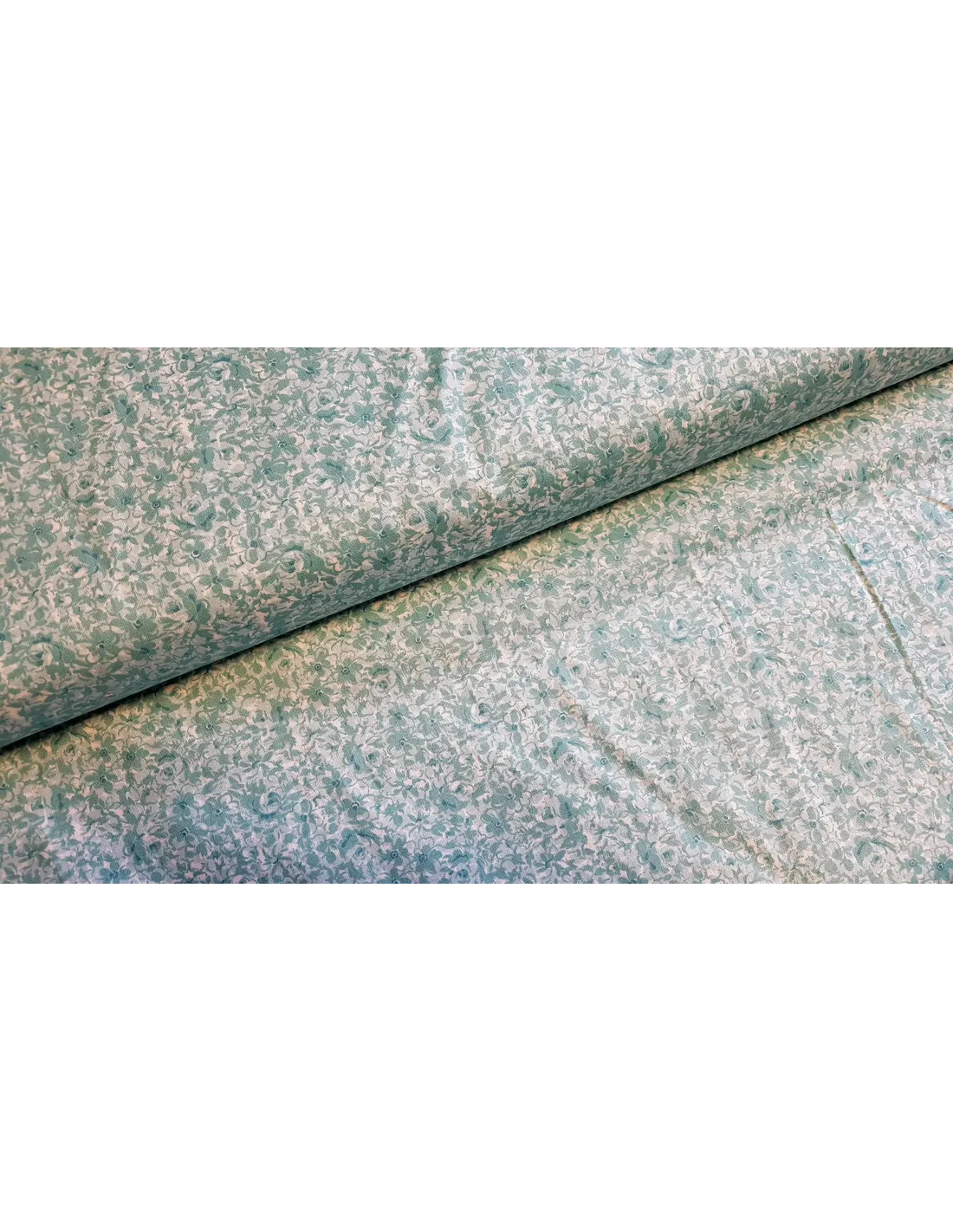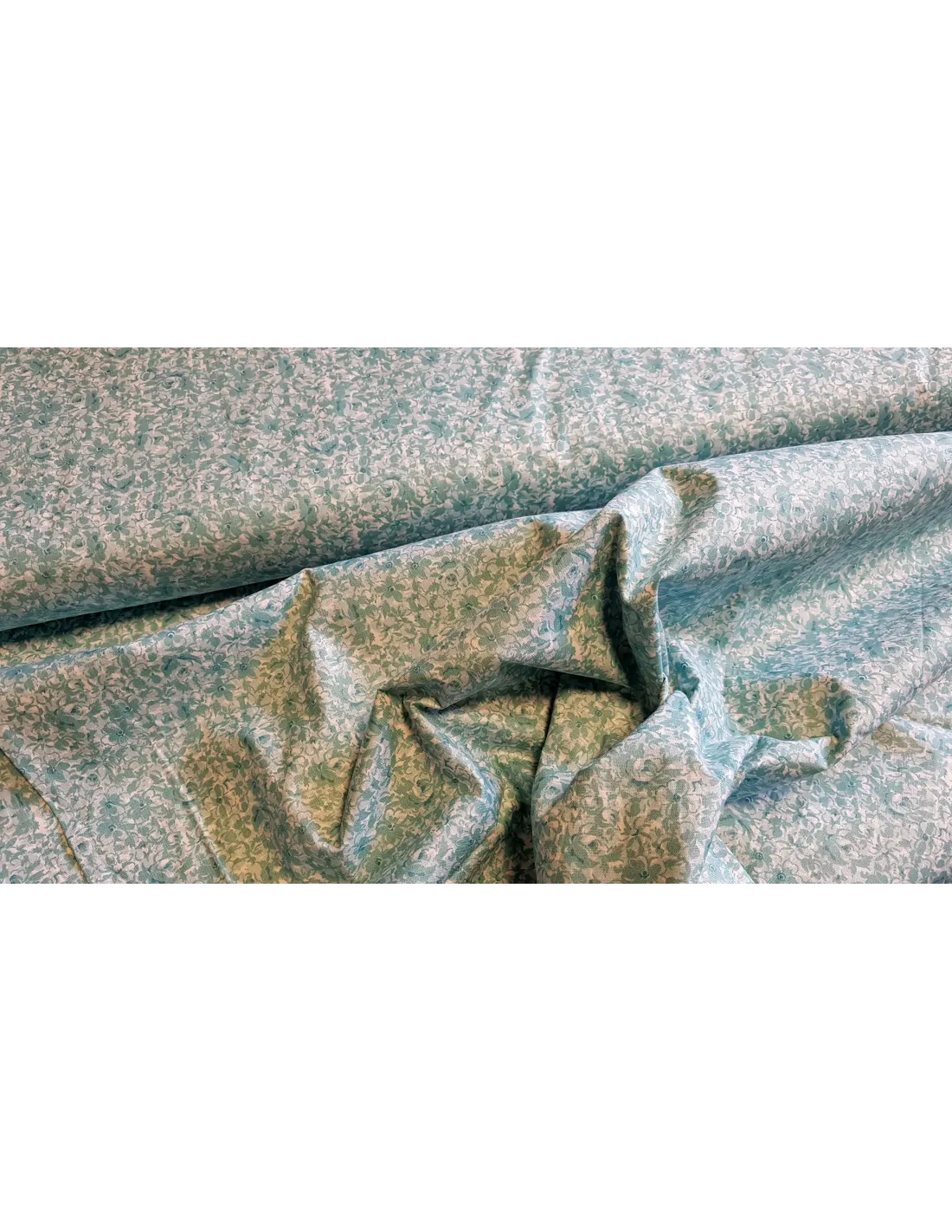 Popeline de coton fleuri sur fond bleu turquoise.