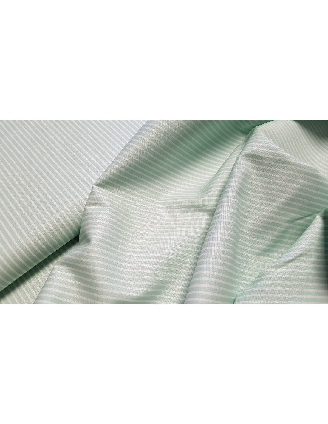 Popeline de coton à imprimés rayures vertes sur fond blanc.