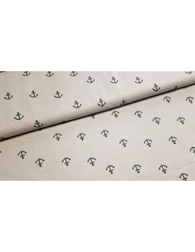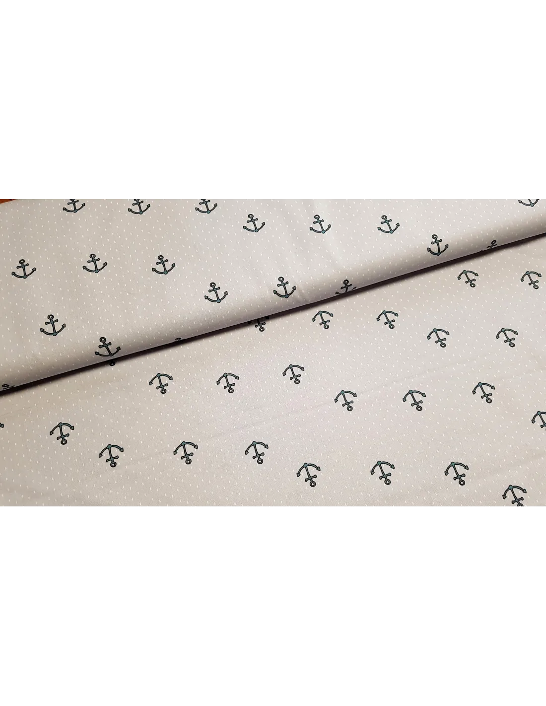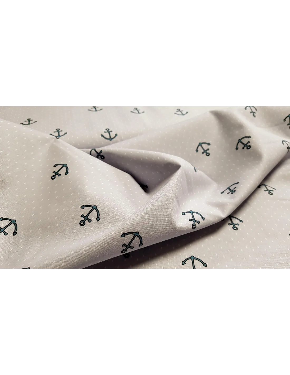 Popeline de coton avec des imprimés ancres marines sur fond gris clair