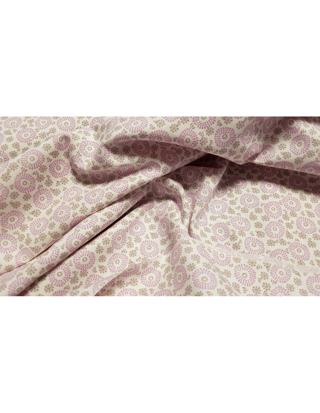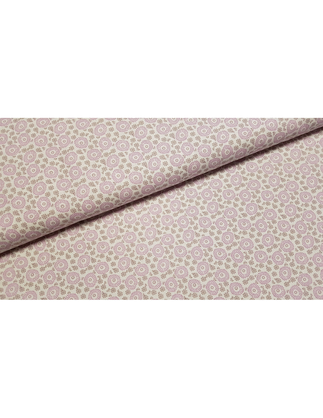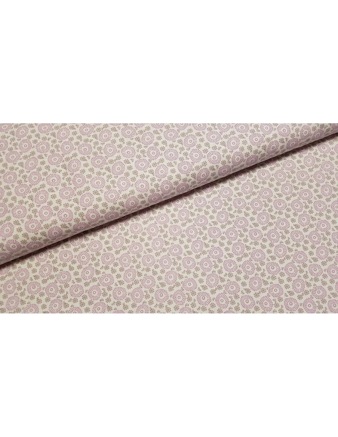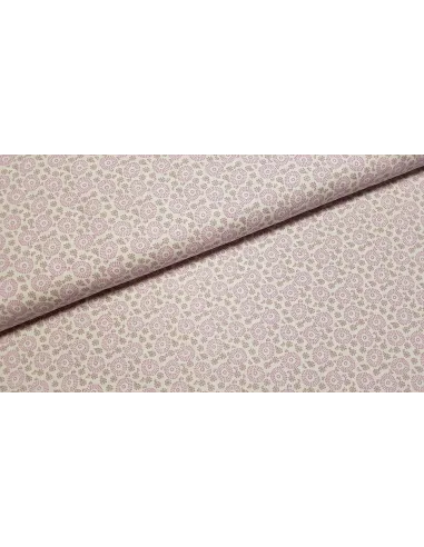 Cretonne de coton aux imprimés coquillages, roses et gris. Ce tissu est un peu plus épais qu'une popeline.