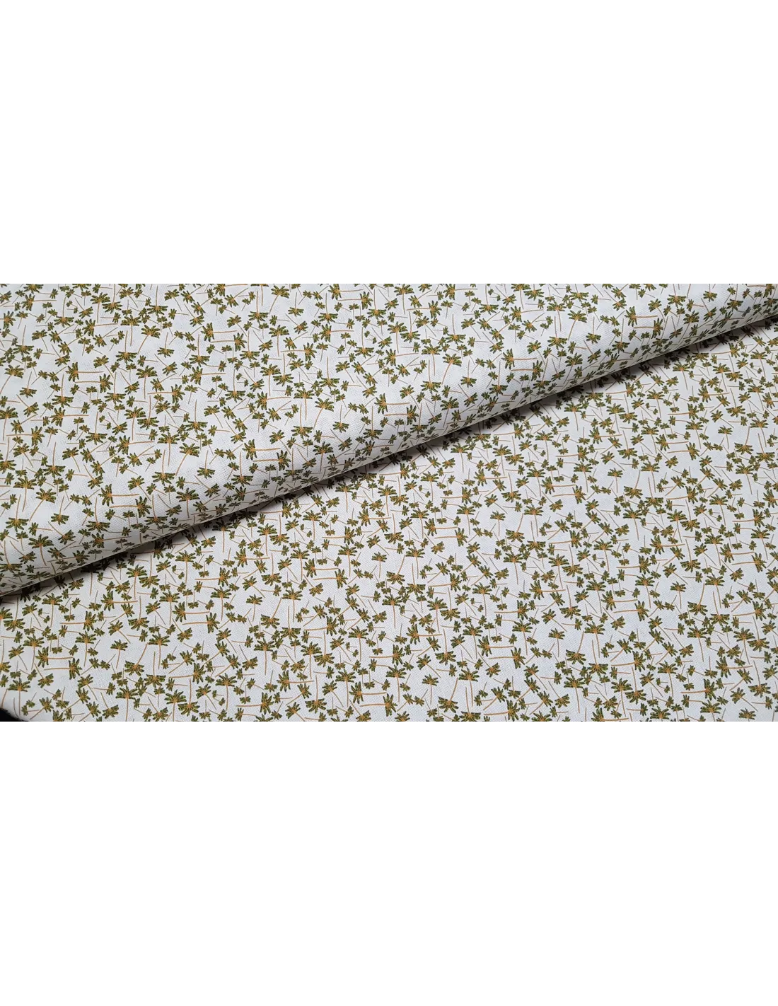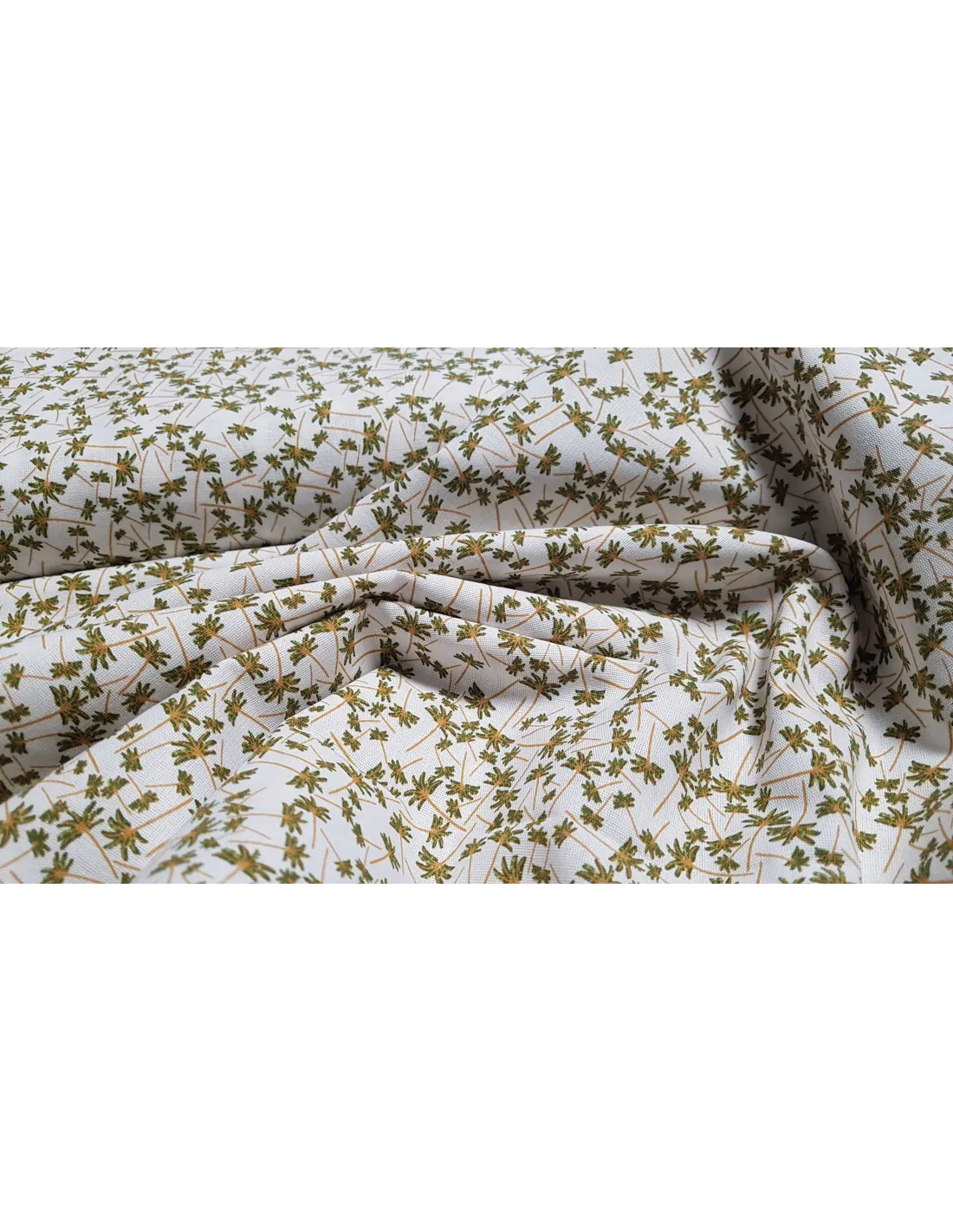 Cretonne de coton aux petits palmiers sur fond blanc. Ce tissu est un peu plus épais qu'une popeline.