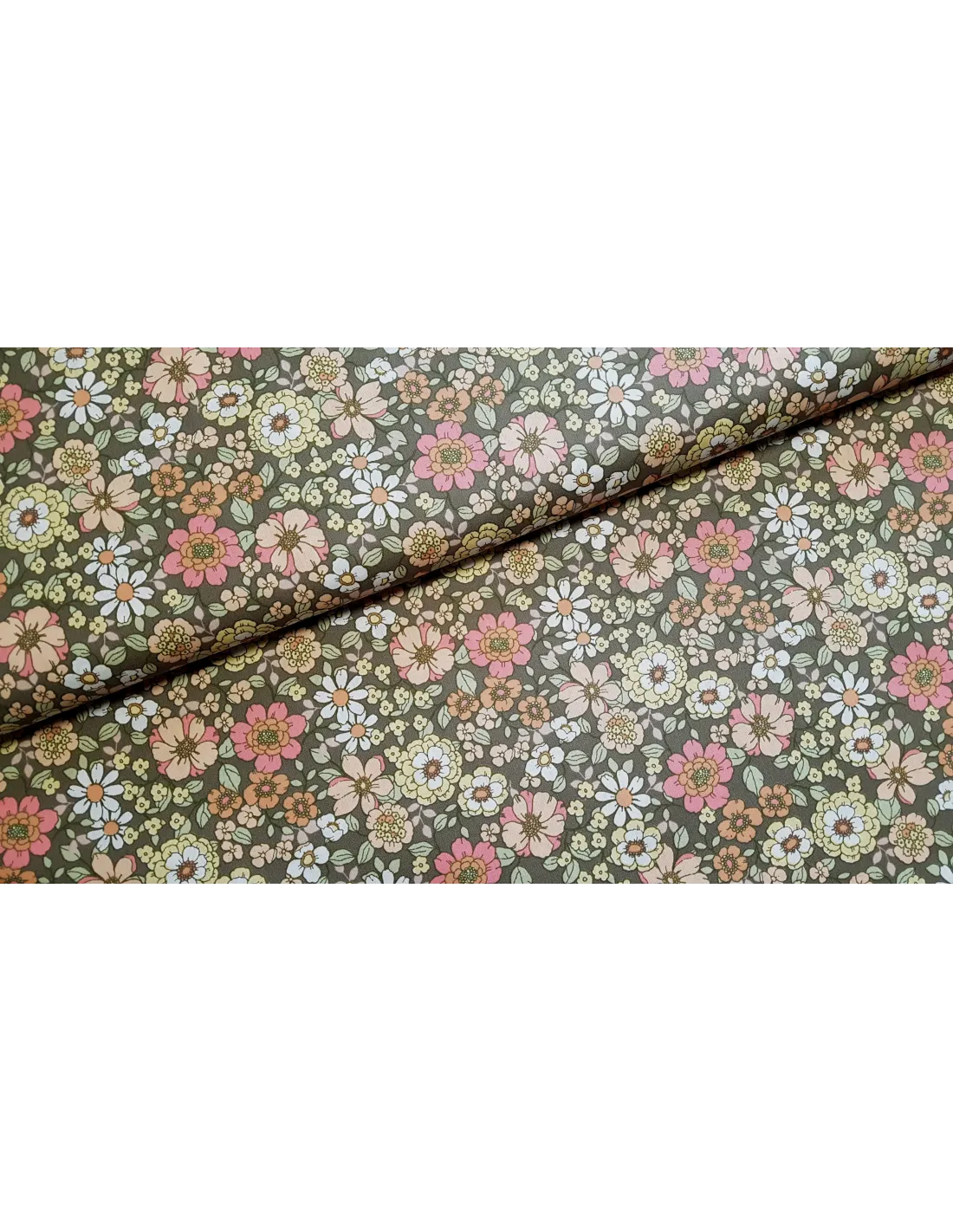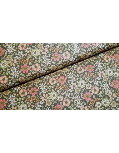 Popeline de coton, impression fleurs 70's