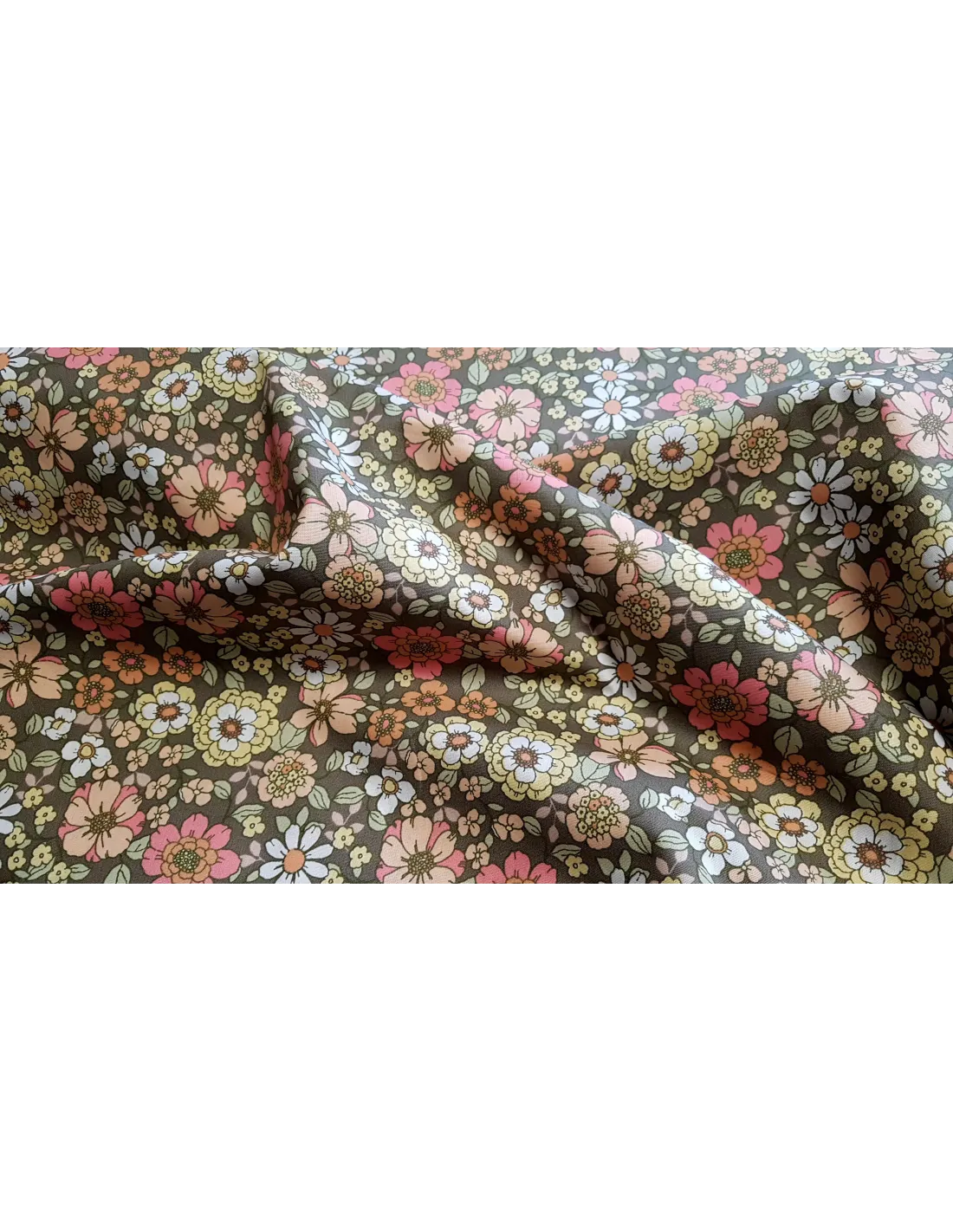 Popeline de coton, fleurs 70's