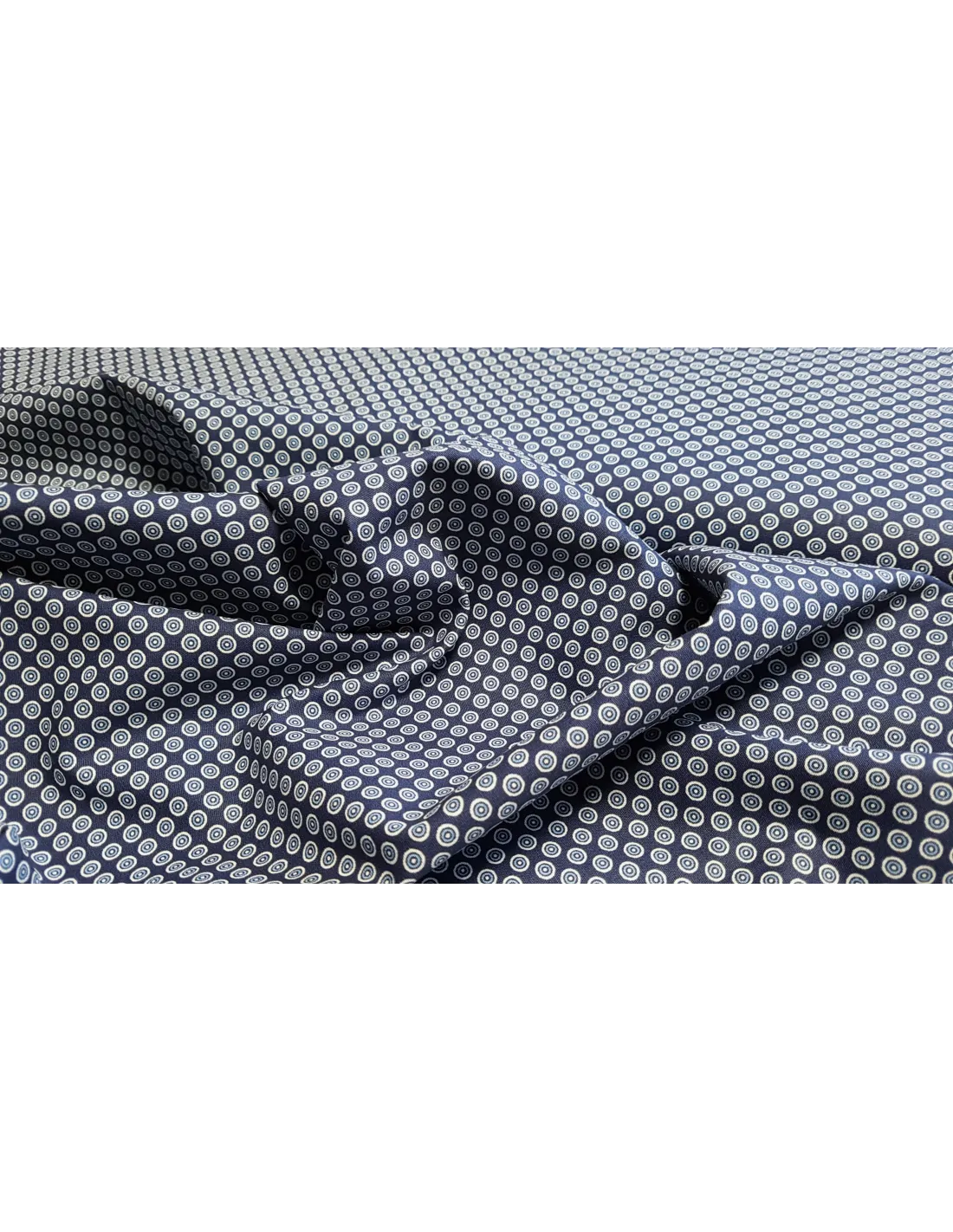 Popeline de coton, ronds blanc et bleus sur fond bleu marine