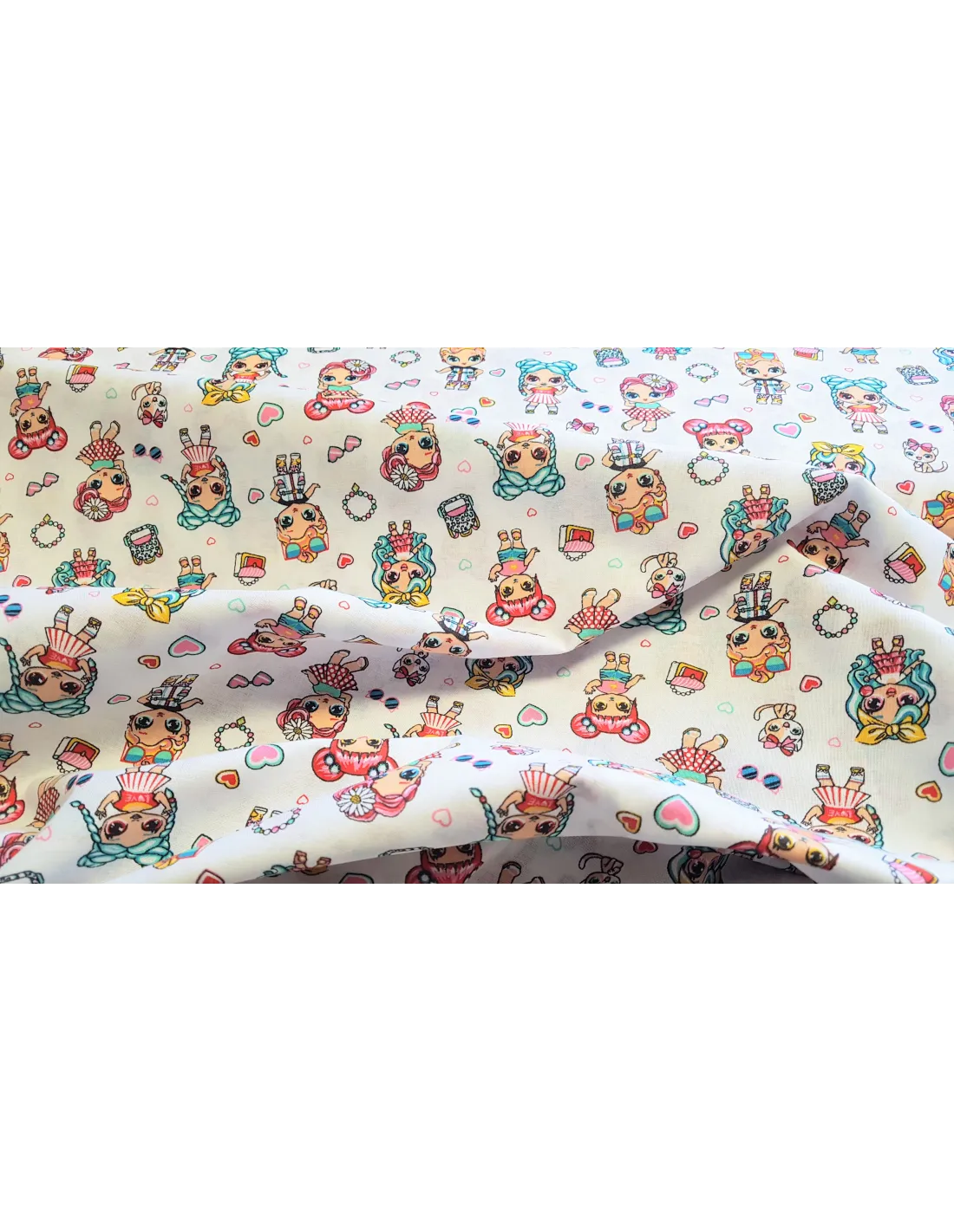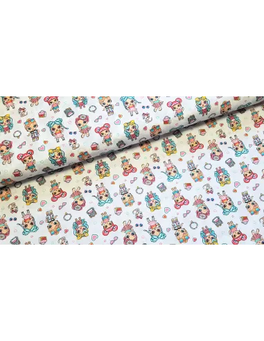Cretonne de coton aux motifs trop cute. Ce tissu est un peu plus épais qu'une popeline.