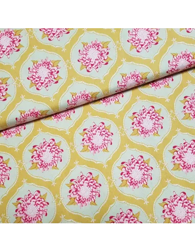 Popeline de coton motifs rappelant une tapisserie d'antan.