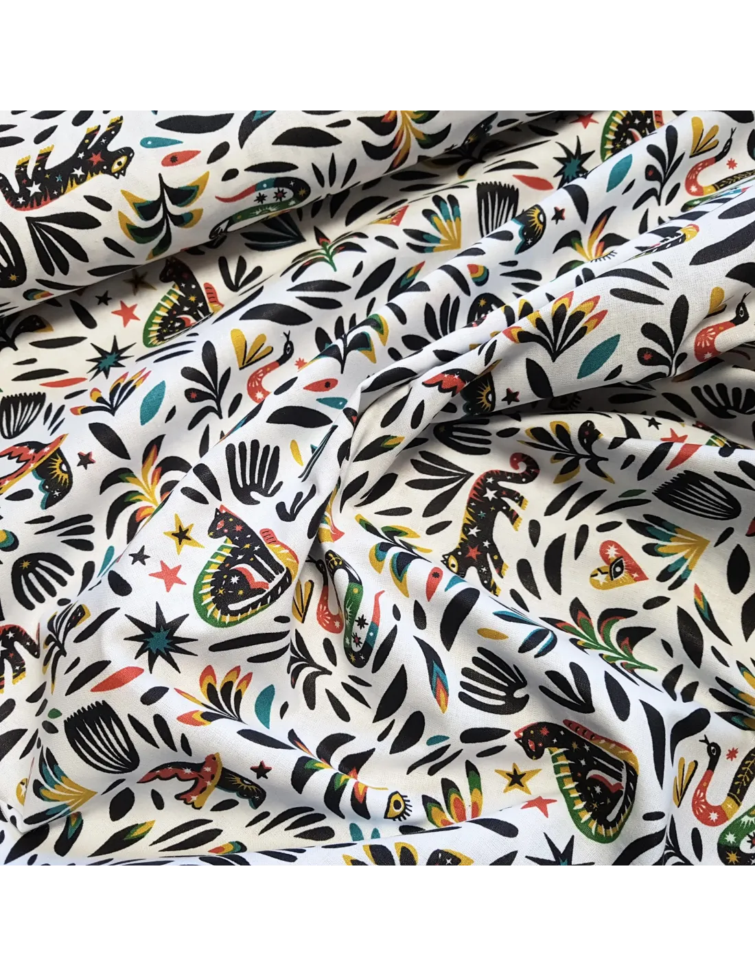 Cretonne de coton aux motifs multicolores.