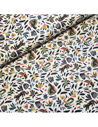 Cretonne de coton aux motifs multicolores.