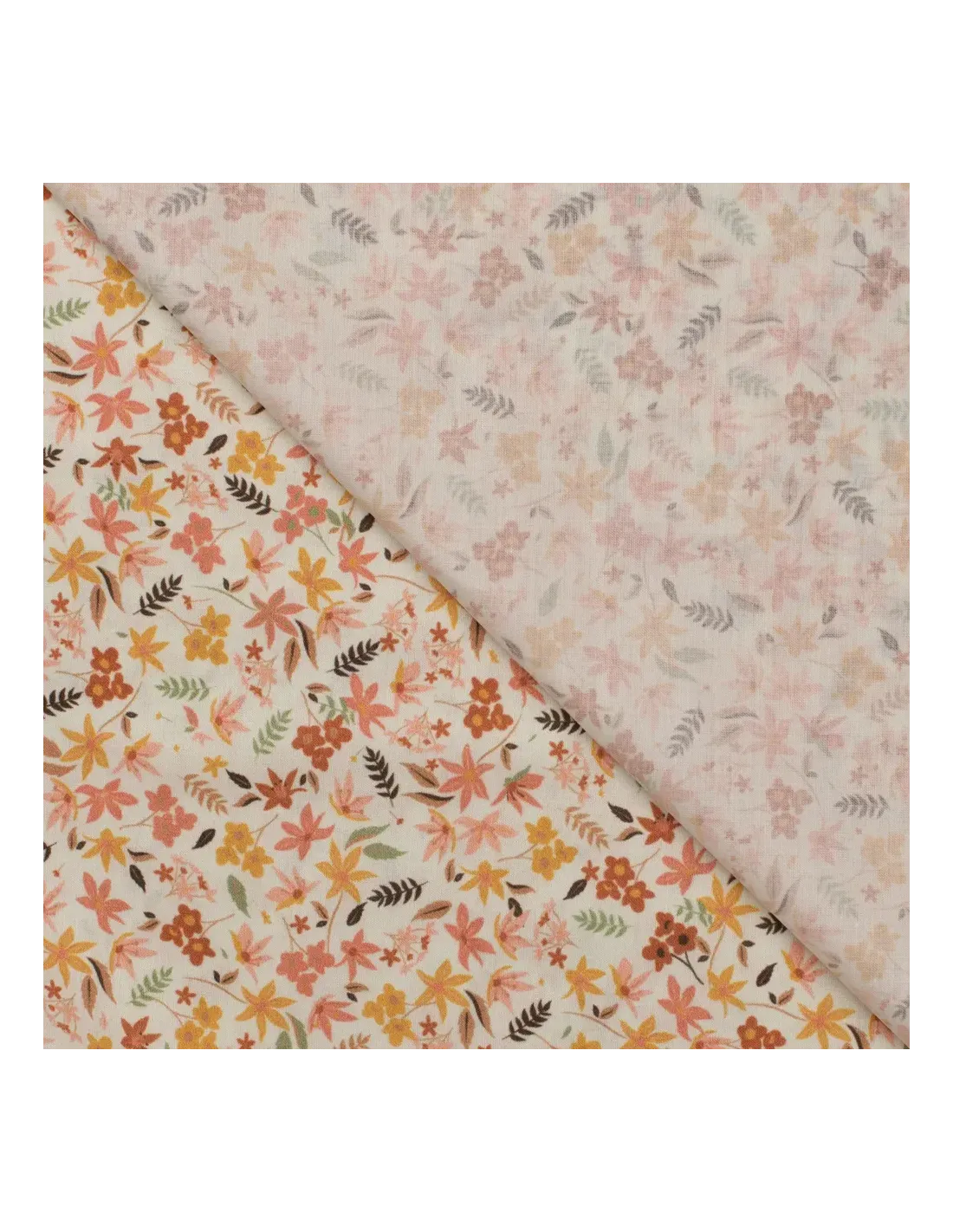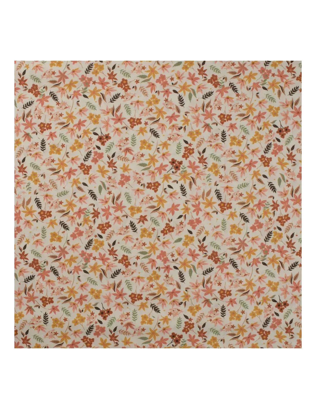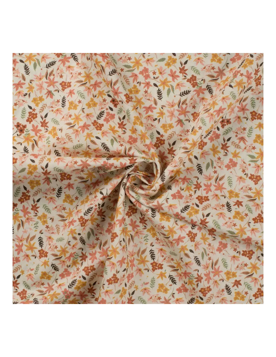 Popeline de coton à impression digitale fleurs dans les tons orange et jaunes sur fond blanc. Ce tissu de haute qualité a un toucher extrêmement doux.
