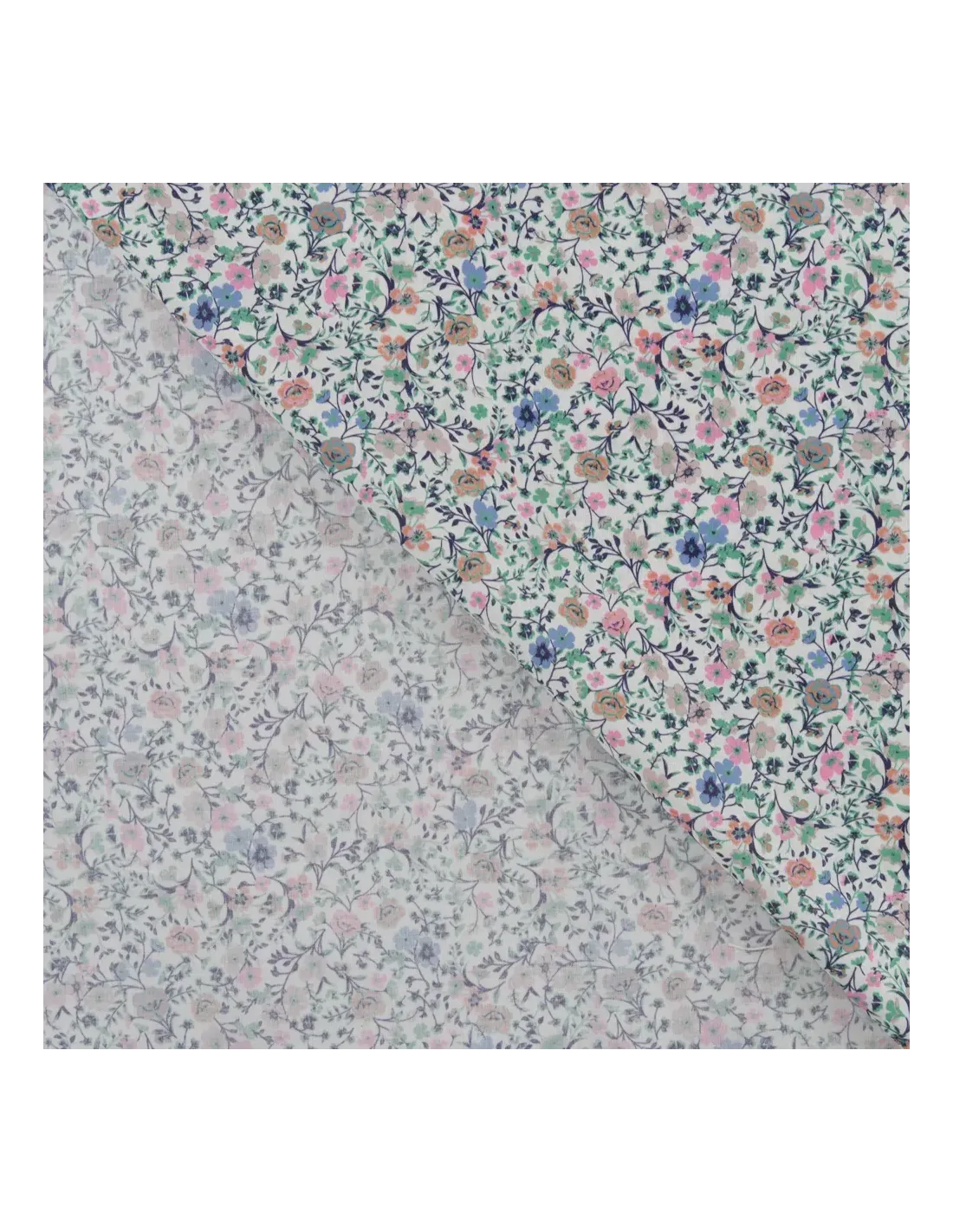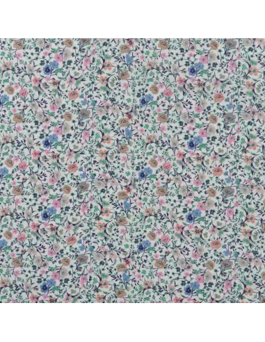 Popeline de coton à impression digitale fleurs dans les tons roses et verts sur fond blanc. Ce tissu de haute qualité a un toucher extrêmement doux.