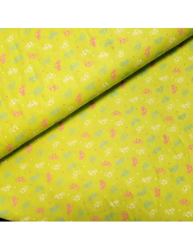 Popeline de coton vélos, sur fond vert pomme