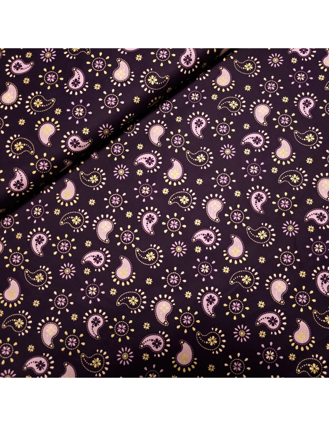 Popeline de coton, lurex, motifs cachemire, violet