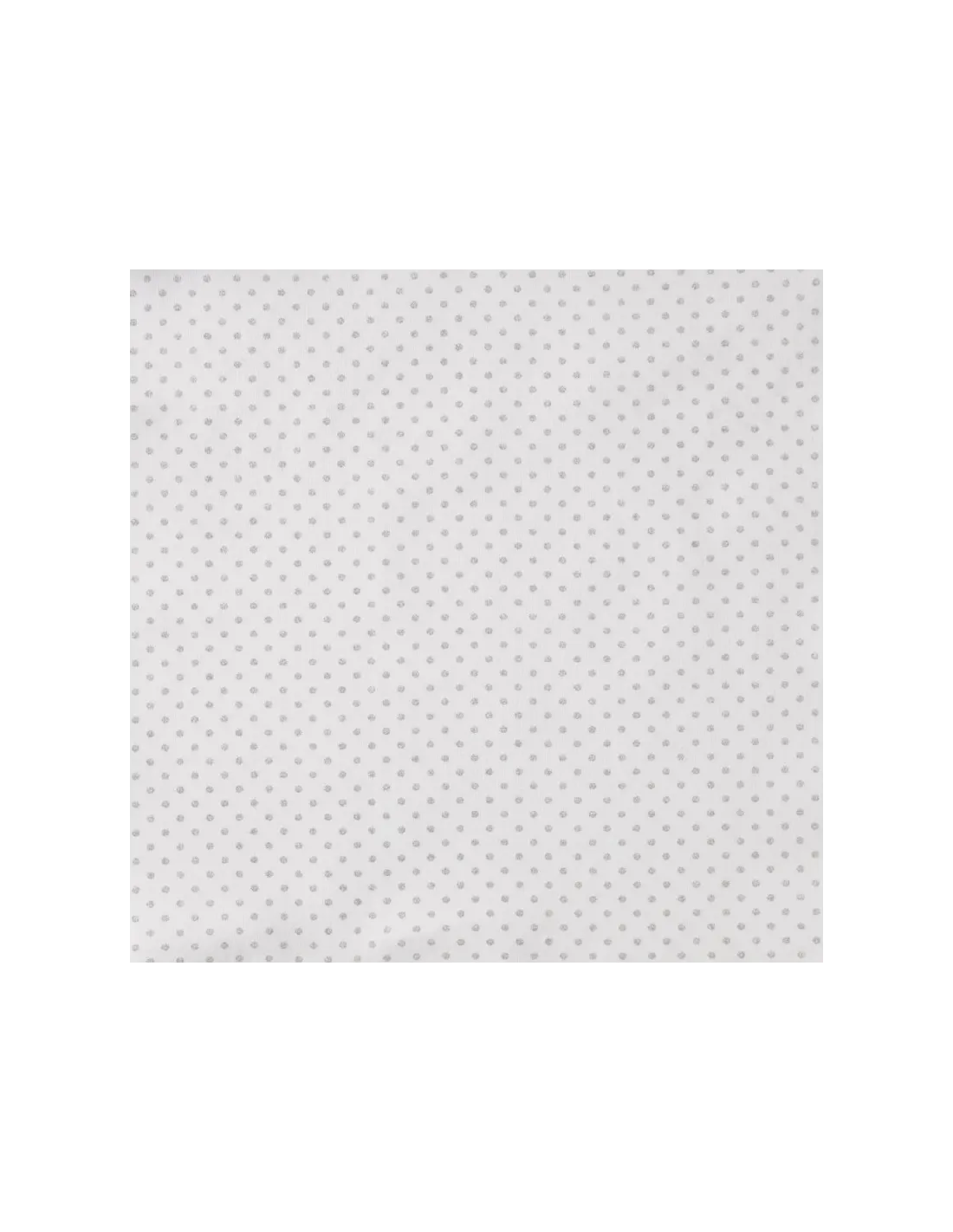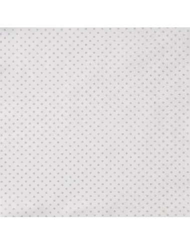 Cretonne coton, pois argentés sur fond blanc. Douce, résistante, certifiée Oeko-Tex®. Idéale pour vêtements enfants, accessoires et déco.