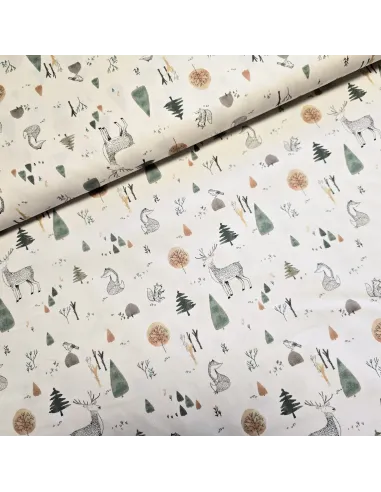 Popeline de Coton, impression digitale : Animaux de la forêt - Design POPPY