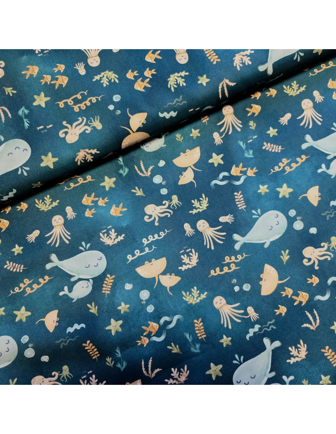 Popeline de coton imprimée aux animaux des fonds marins. Impression digitale pour plus de netteté. Design exclusif POPPY. Tissu doux, résistant, facile à coudre. Certifié Oeko-Tex® (sans substances nocives). Idéal pour vêtements légers et accessoires.