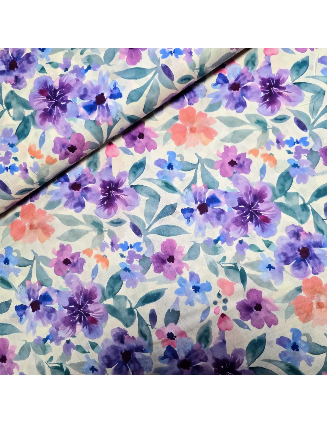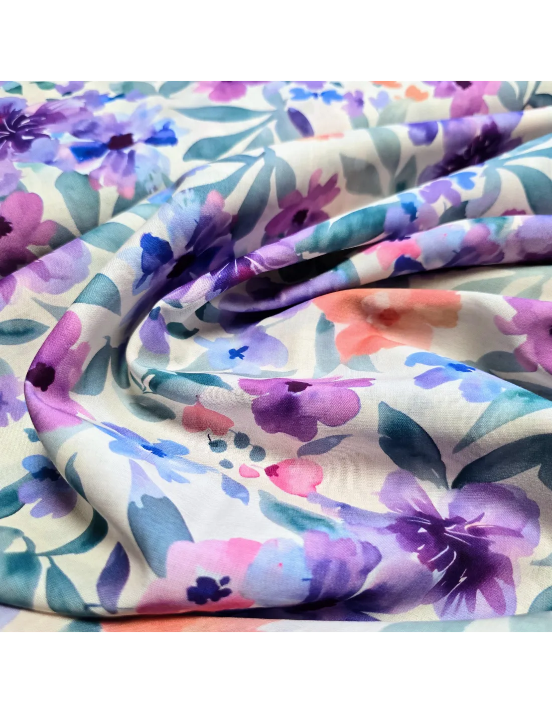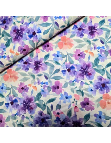 Voile de coton, impression digitale, fleurs violettes