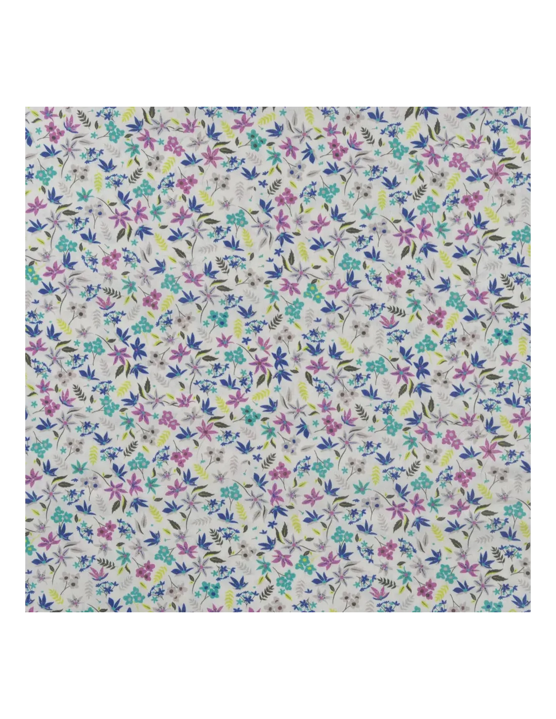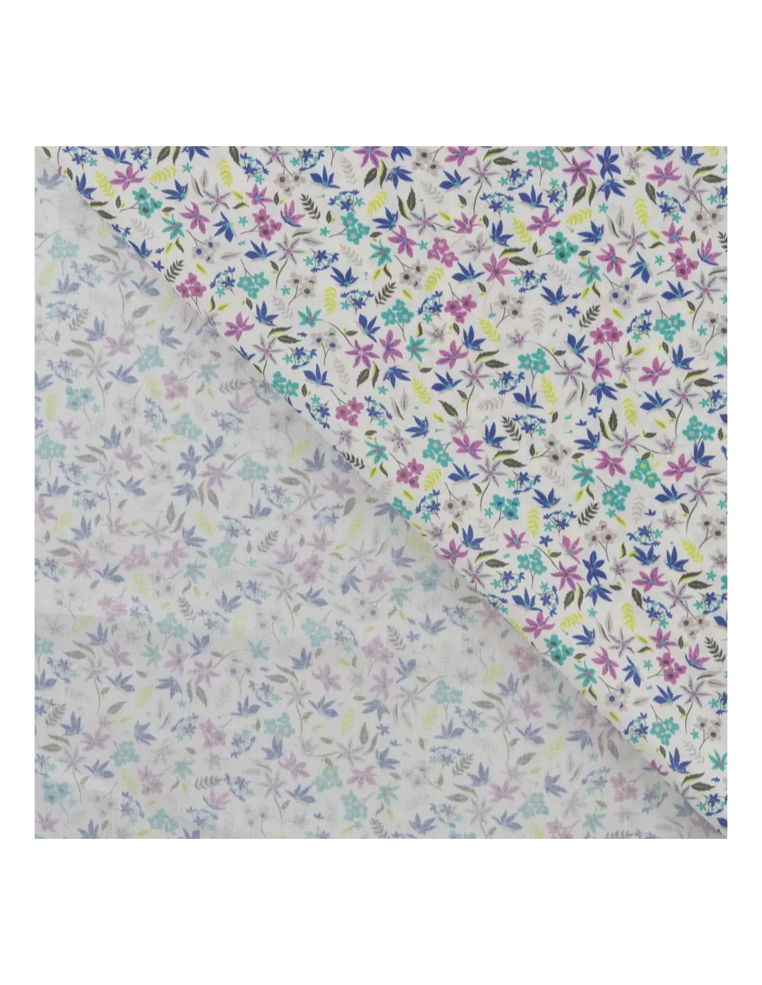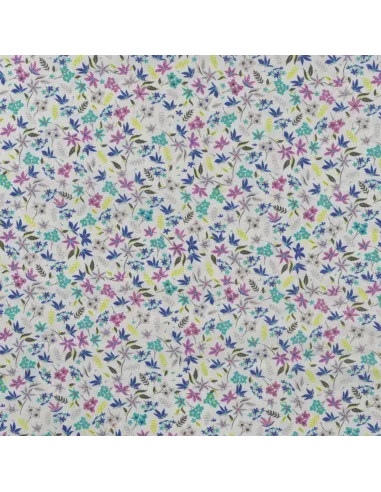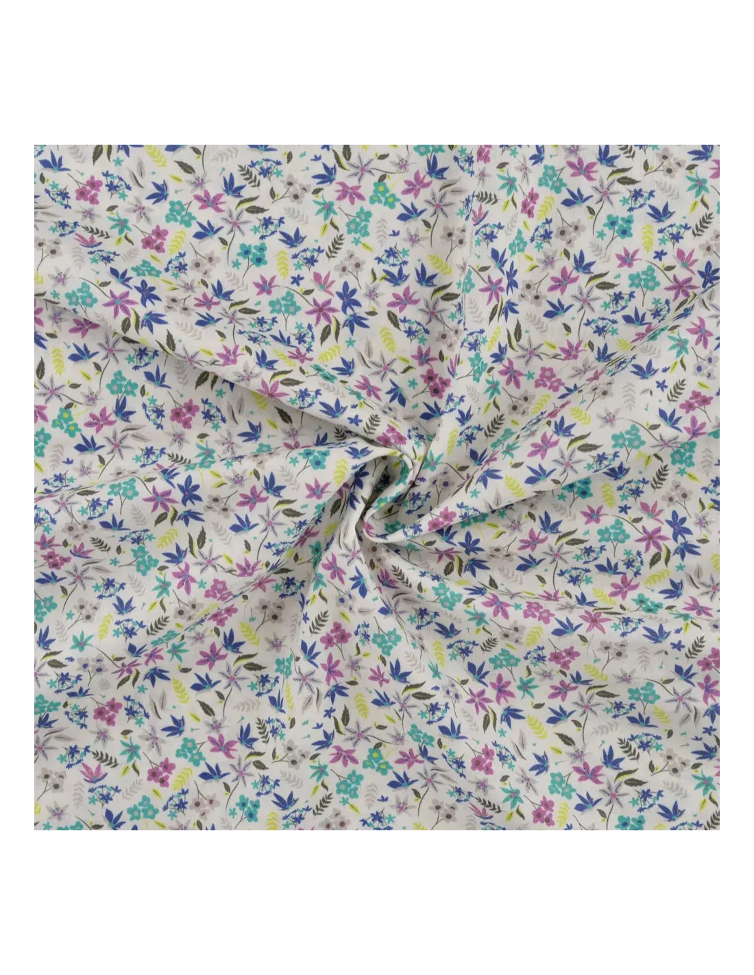 Popeline de coton légère et aérienne, imprimée fleurs dans les tons roses et violets. Impression digitale. Ce tissu de haute qualité a un toucher extrêmement doux.