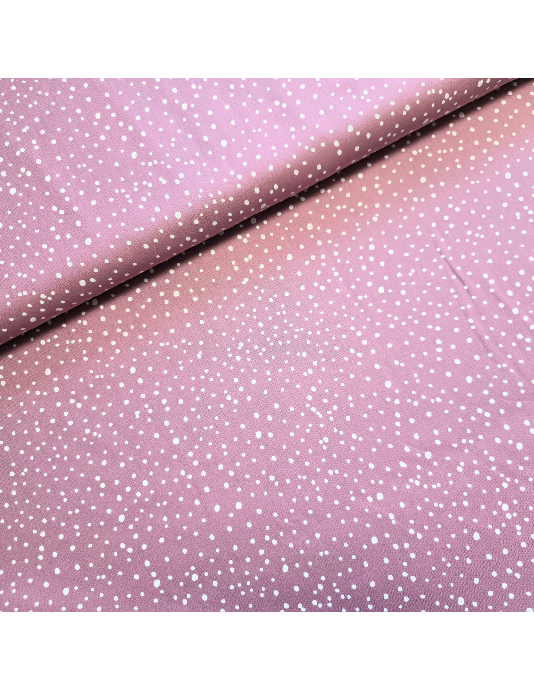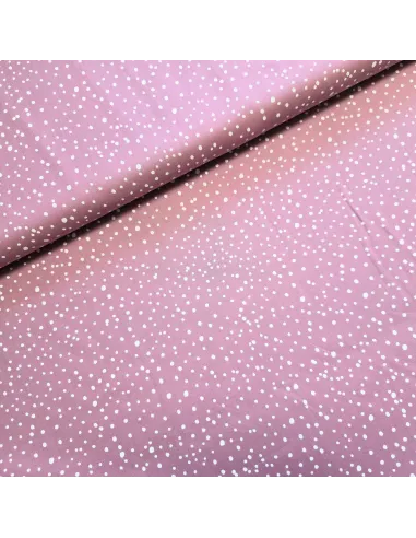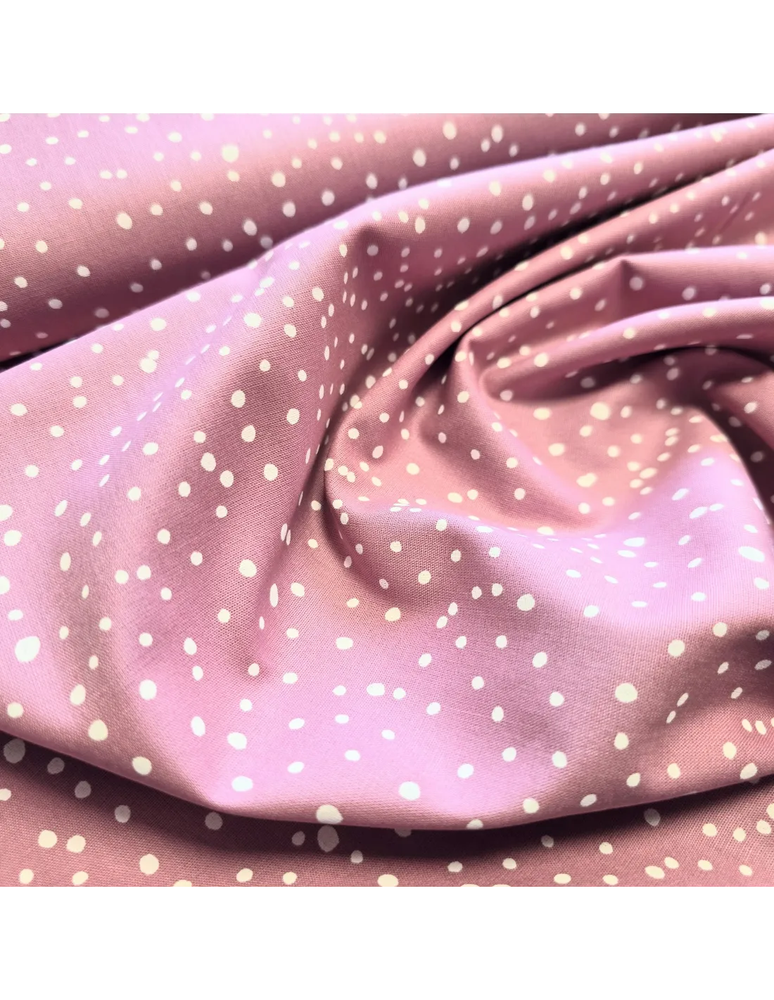 Popeline de coton imprimée pois blancs sur fond vieux rose.