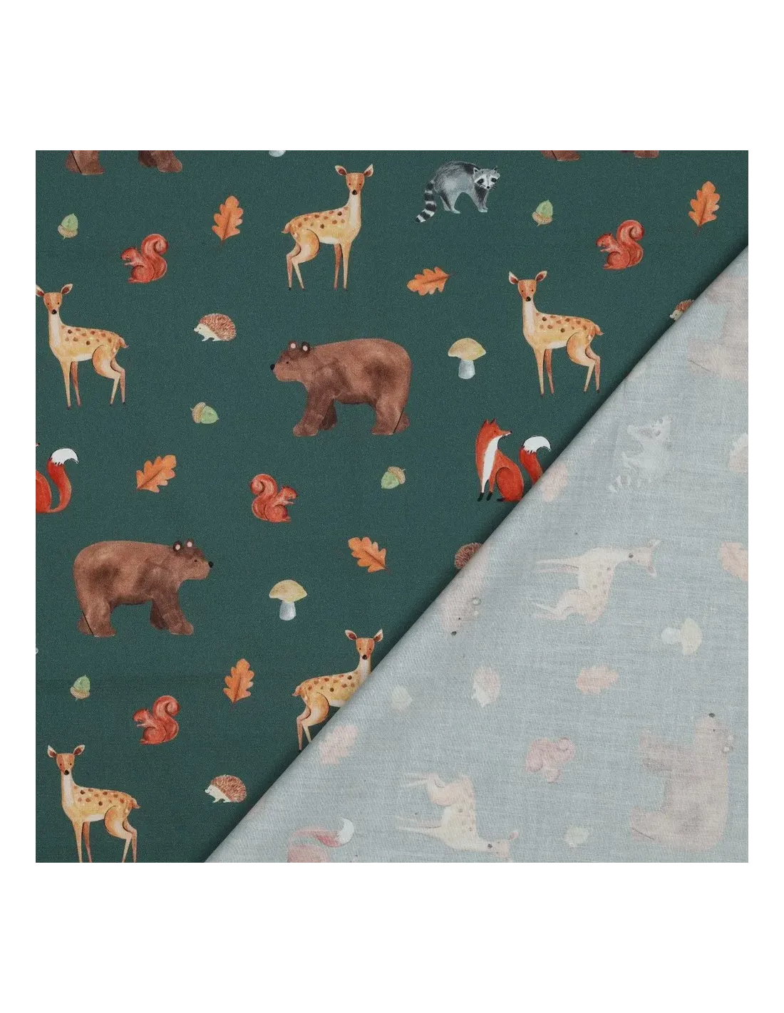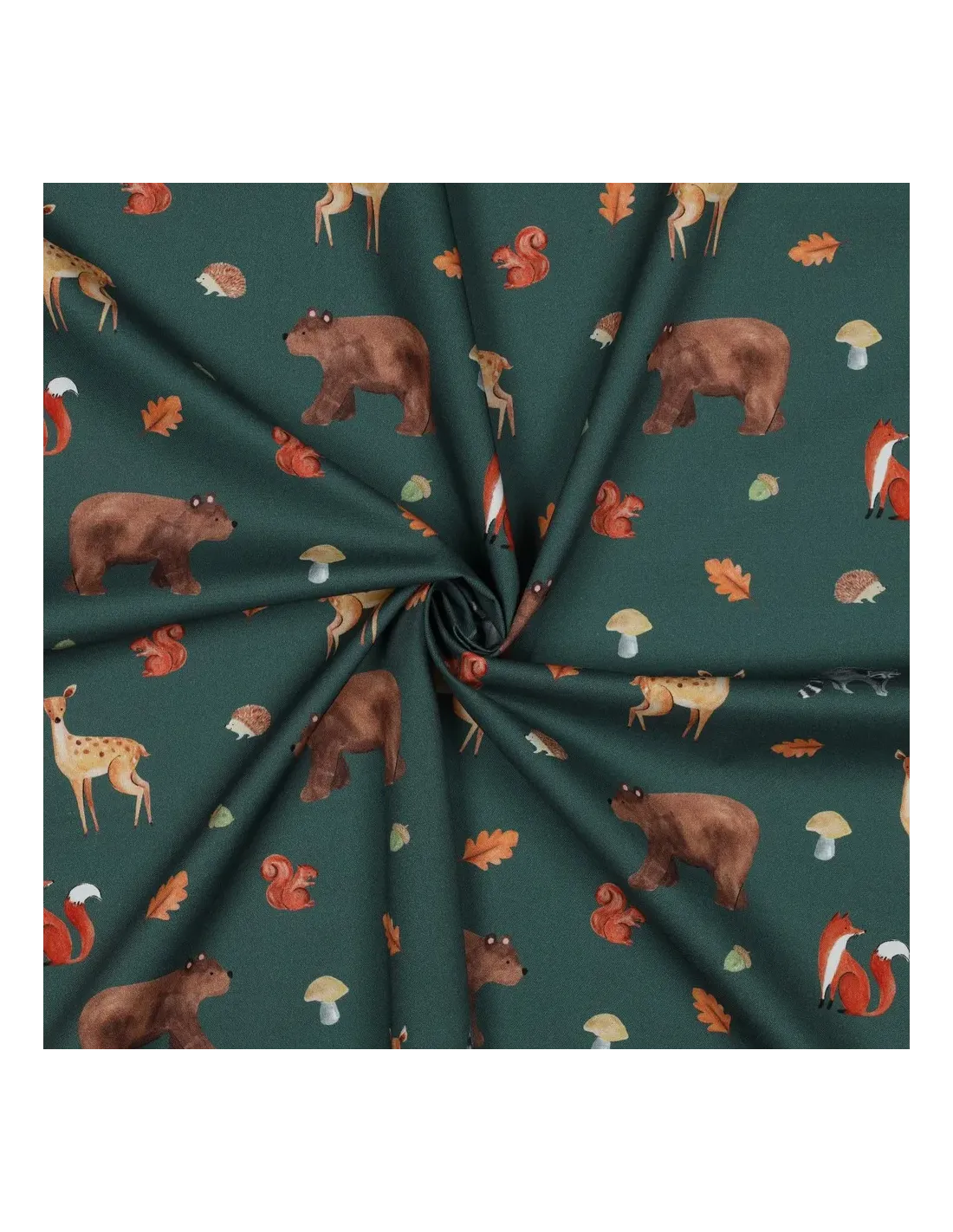 Plongez dans un univers enchanté avec cette magnifique popeline de coton aux motifs d'animaux de la forêt, conçue pour stimuler l'imagination. Sur un fond vert sapin profond et apaisant, une multitude de charmants habitants de la forêt – renards espiègles, biches élégantes et écureuils vifs – prennent vie grâce à une impression digitale de haute qualité. Cette technique d'impression garantit des couleurs vives et des détails d'une grande finesse.