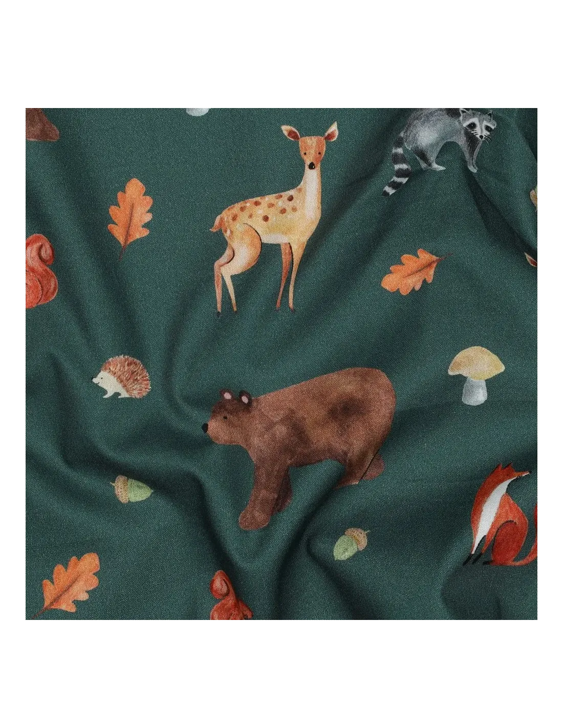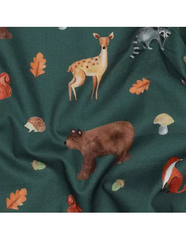 Popeline de coton, impression digitale, animaux de la forêt
