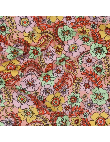 Popeline de coton, Flower Power Acidulé