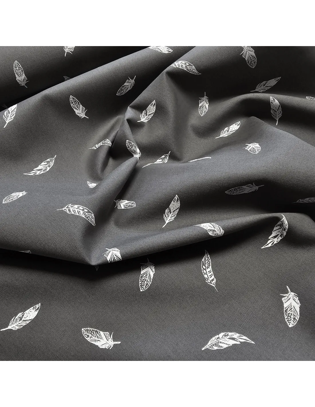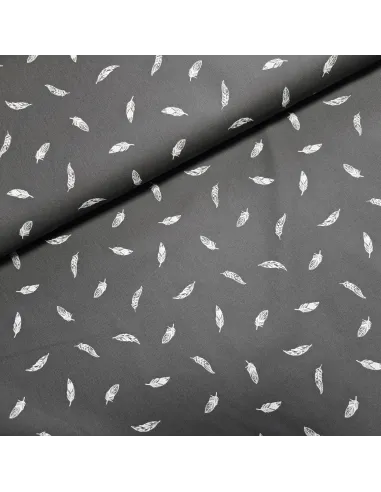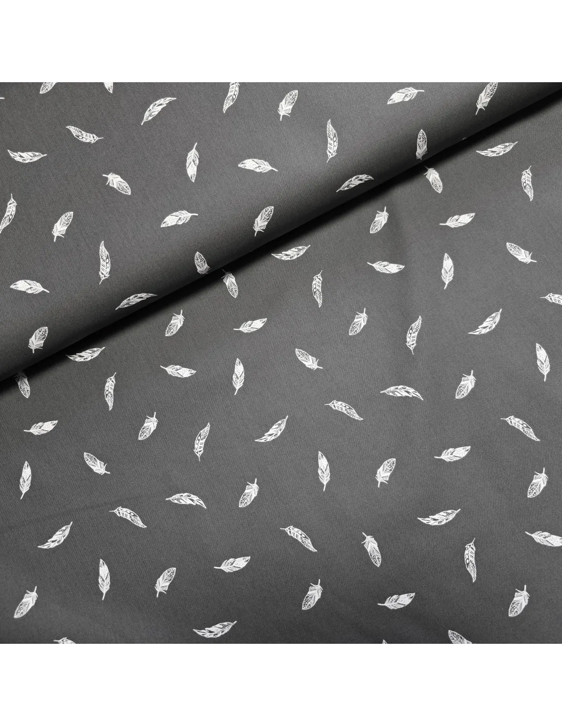 Laissez-vous transporter par la délicatesse et la légèreté de cette popeline de coton, ornée d'un motif de plumes blanches sur un fond gris moderne. Ce tissu certifié Oeko-Tex est parfait pour des créations à l'esprit cocooning et épuré.