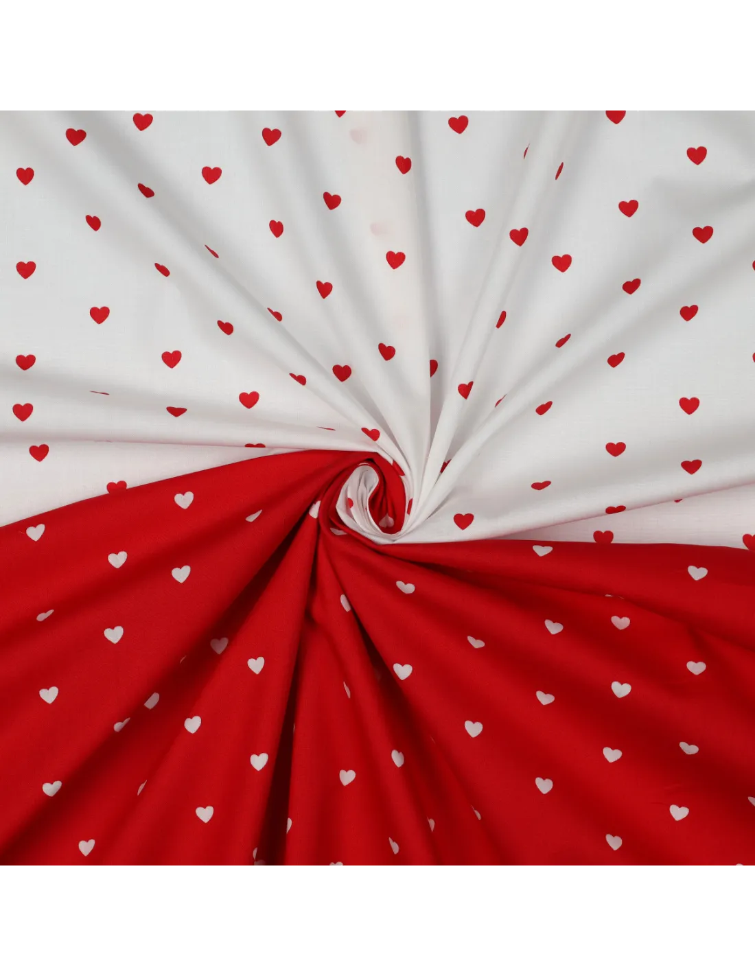 Popeline de coton, coeurs rouges