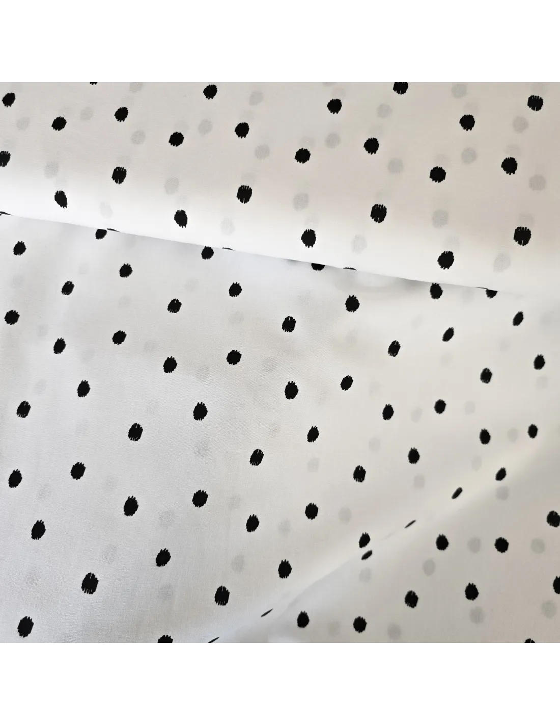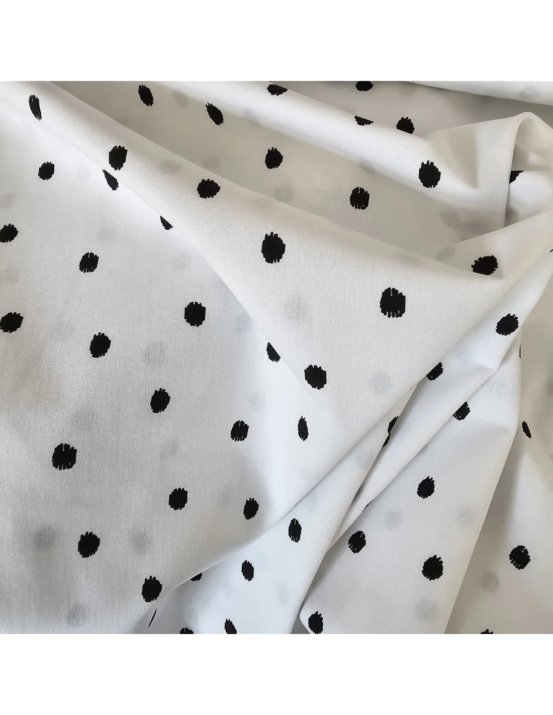 ⚫ Popeline de Coton – Pois Noirs sur Fond Blanc