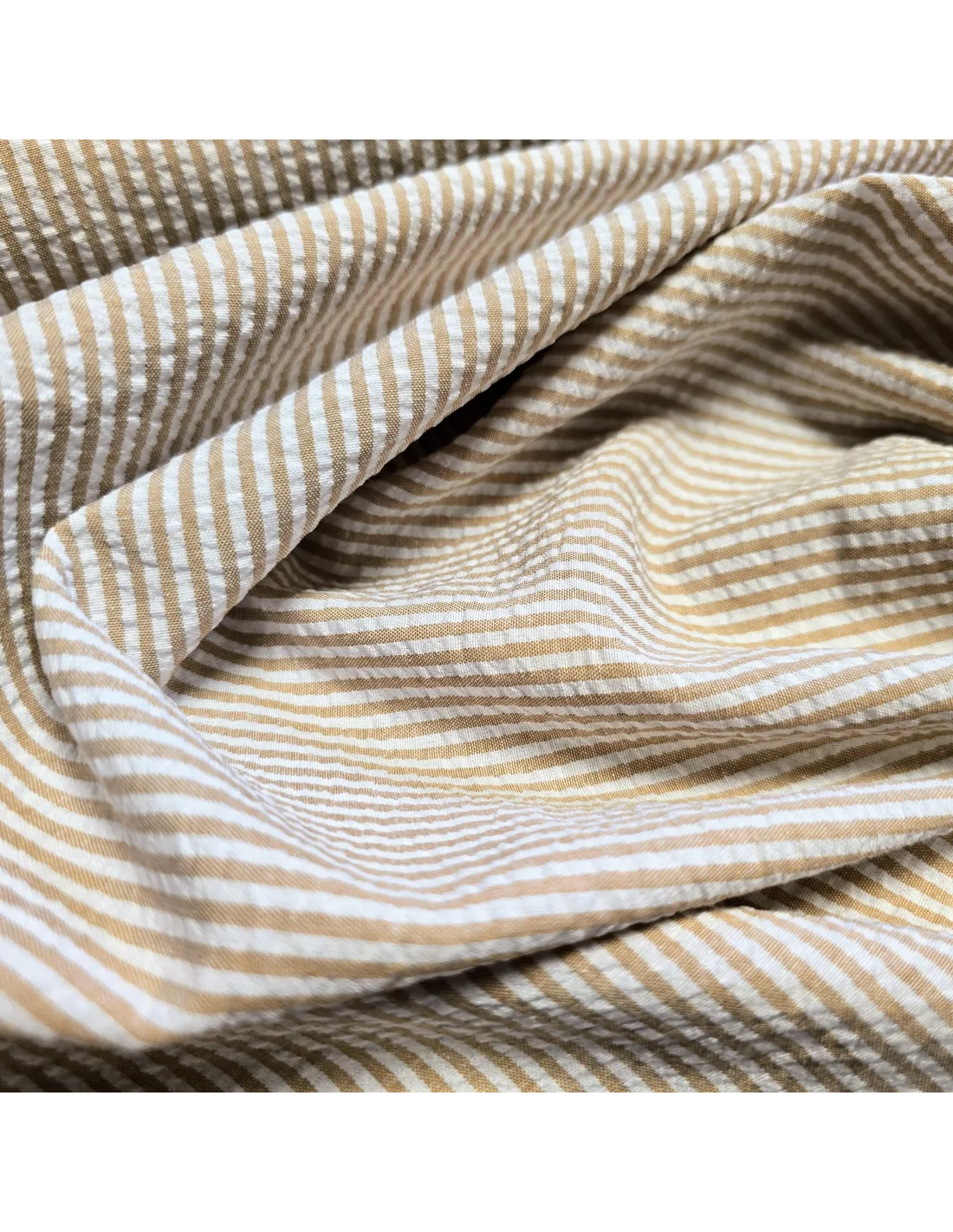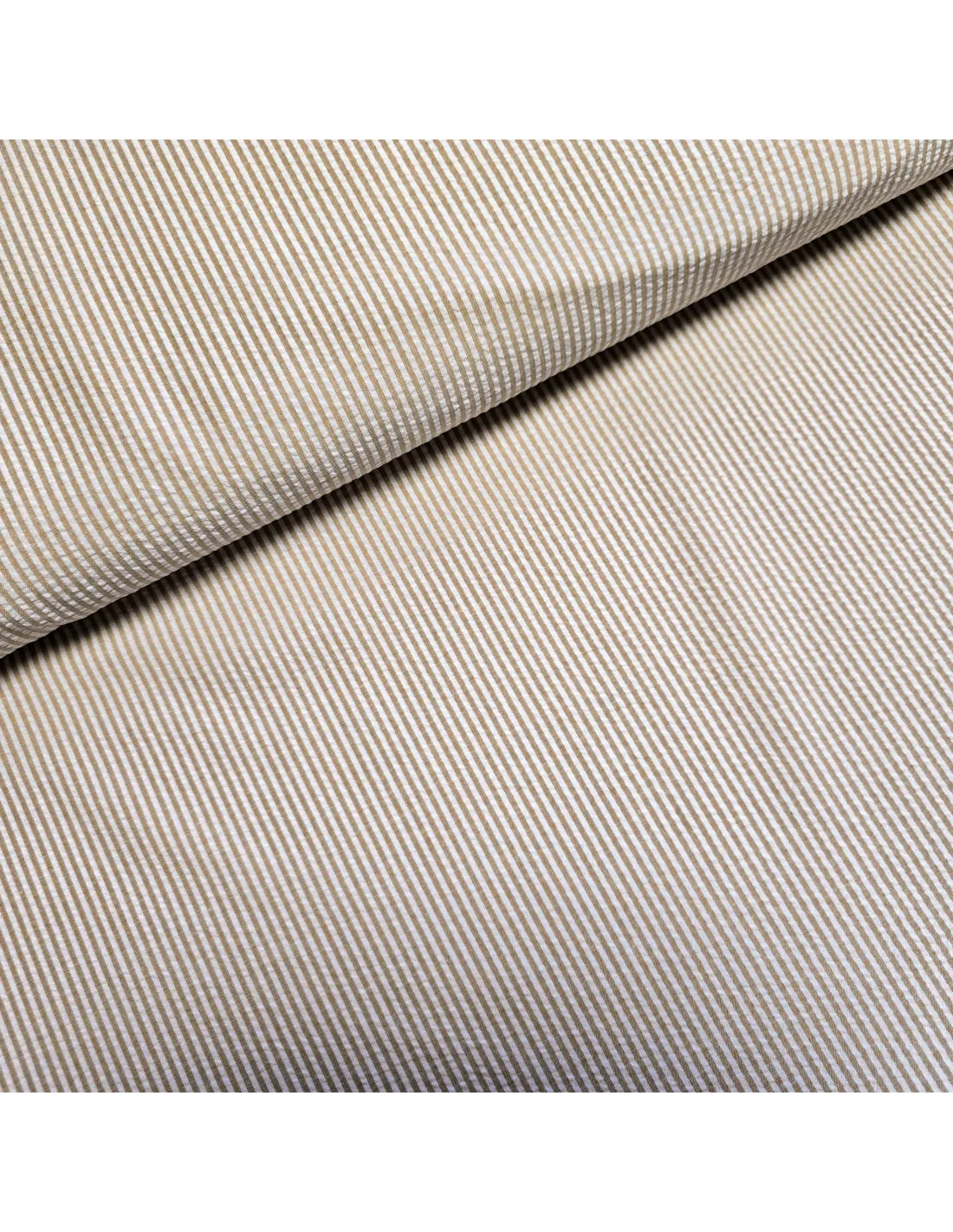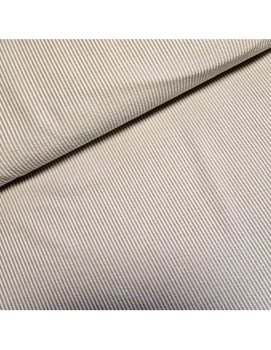 Fines rayures gaufrées beiges et blanches. Superbe pour un petit haut ou une jupe.