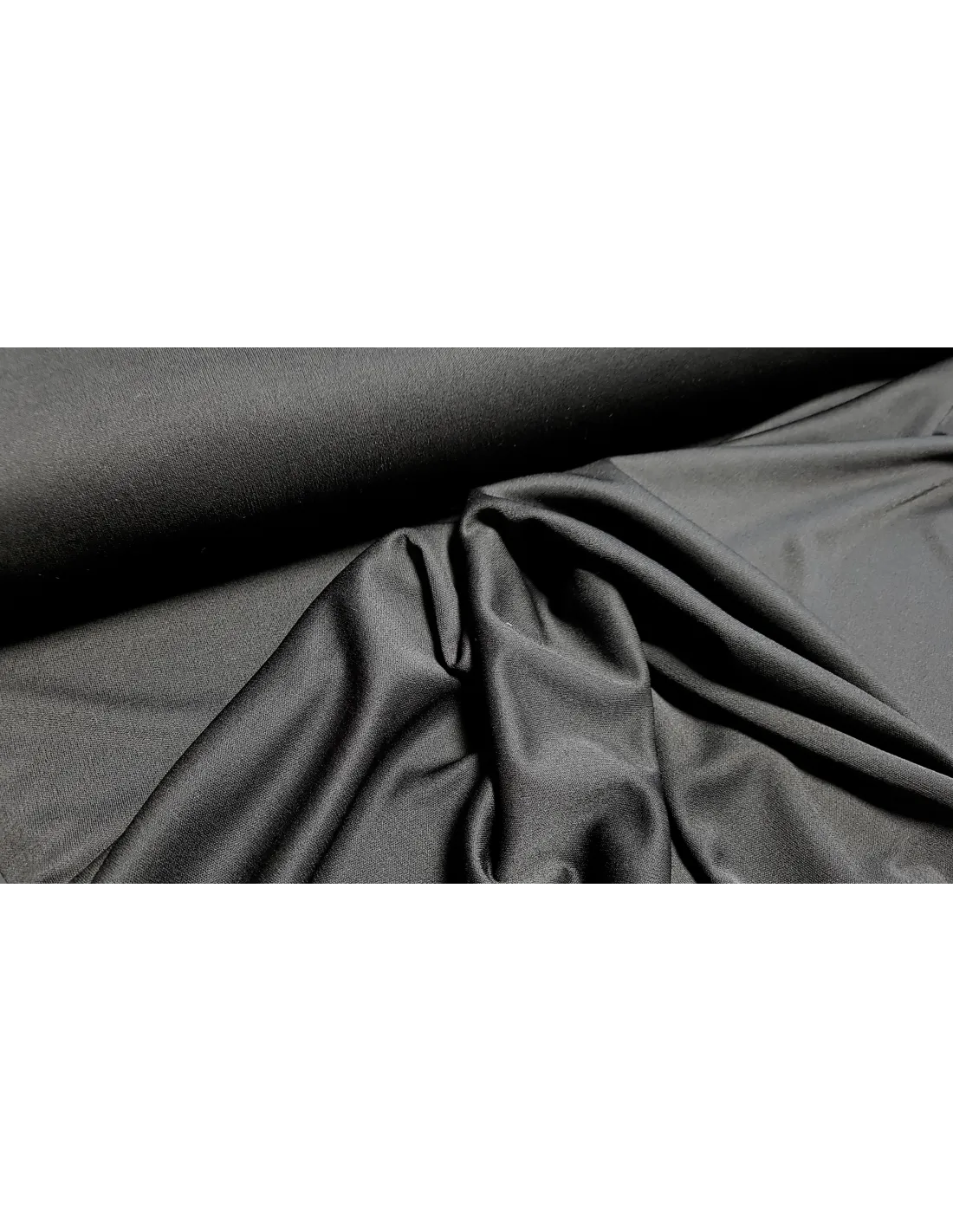 Mousseline lourde stretch noire. Ce tissu est idéal pour la confection de chemisiers, robes, jupes…