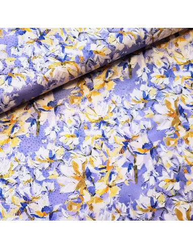 Microfibre satinée, motifs abstraits fleurs dans les tons violets.