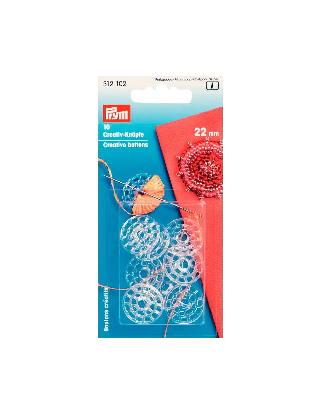 Les boutons créatifs sont les modèles parfaits pour la conception individuelle de boutons décoratifs et de broches. Les rondelles en plastique transparent sont disponibles en diamètre de 22 mm ou de 36 mm et peuvent être cousues de différentes façons avec des fils colorés et ornées de perles. Le bouton de création de Prym est garni à l'arrière d'un œillet robuste à coudre. Vous obtenez de magnifiques pièces uniques qui peuvent servir de bouton décoratif, de broche ou comme bouton de fermeture assorti à la couleur de vos vêtements. Un guide illustré avec trois possibilités d'application se trouve sur l’emballage.