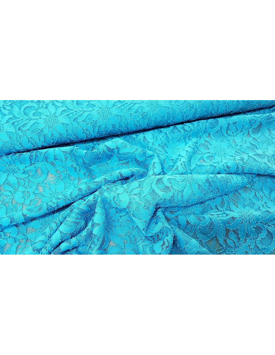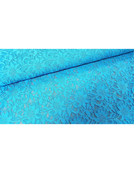 Très belle dentelle fleurie stretch dans les tons de bleu turquoise. Ce tissu élégant mettra parfaitement en valeur vos tenues de soirée...