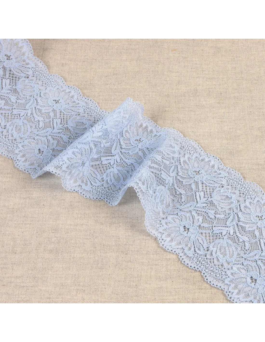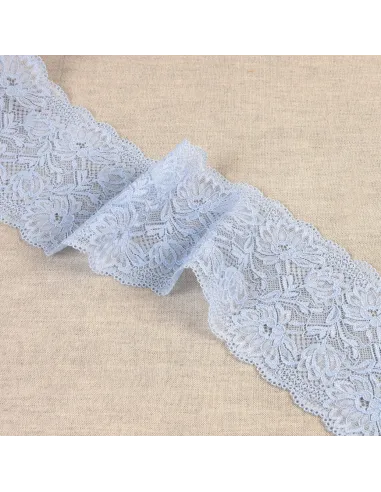 Ruban dentelle élastique fleurs, 10cm, bleu ciel